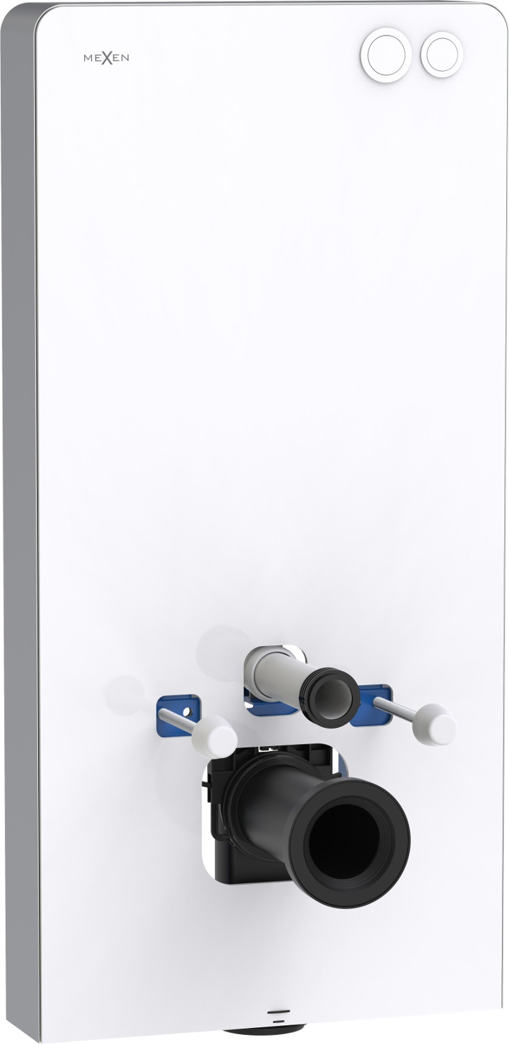Mexen Tex Air G е модерен външен стелащ за WC, съчетаващ функционалност с естетика. Височината 103 cm, ширината 50 cm и дебелината 12 cm го правят подходящ за различни пространства. Неговият преден панел от закалено стъкло и страничен от полиран алуминий добавят елегантност. Вграденият бутон за промиване и пневматичната система за промиване гарантират удобството на използване. Съвместим е с висящи и стоящи тоалетни и позволява настройка на количеството вода: 3/6 L.