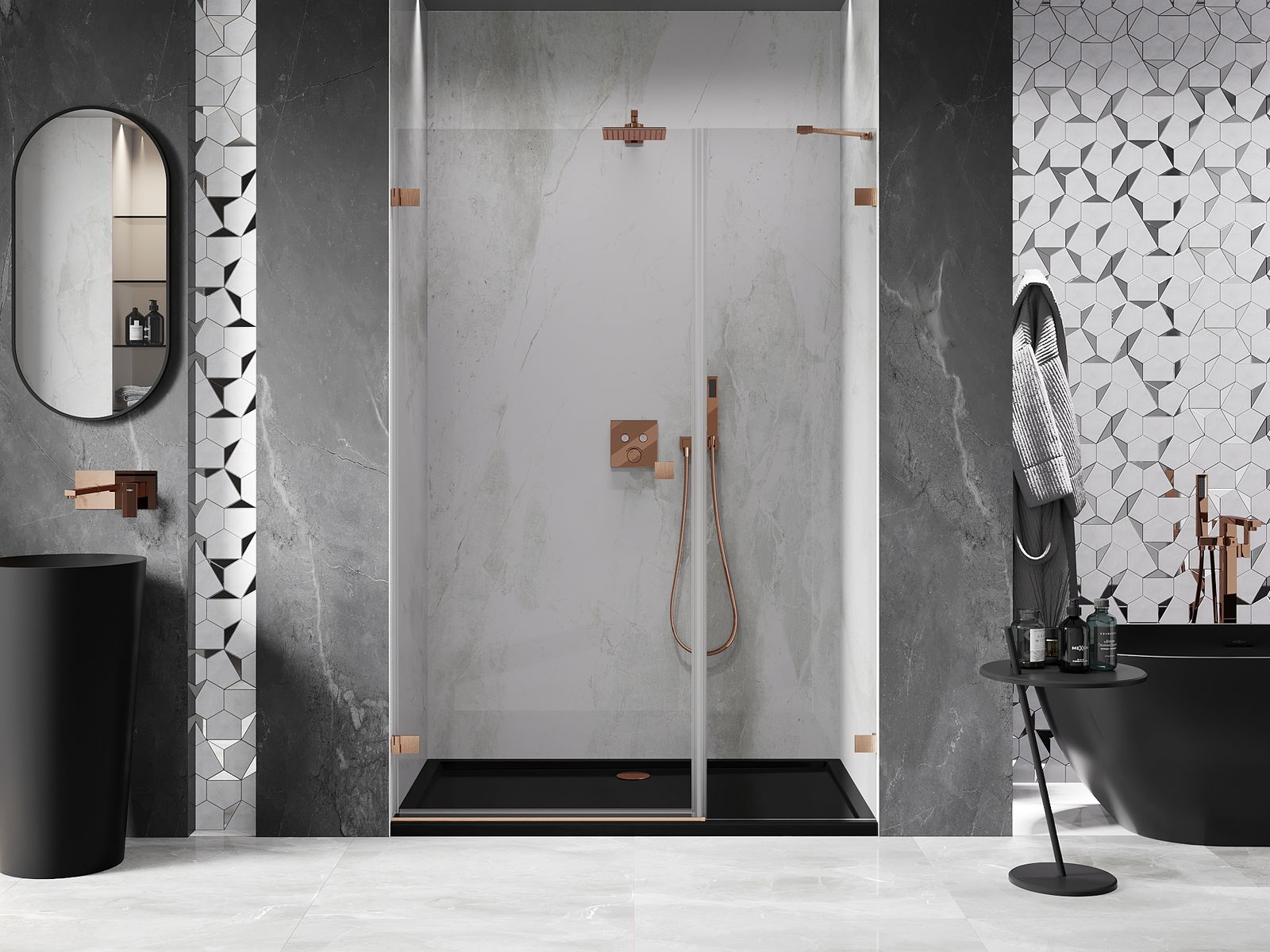 Mexen Lunar-B лява отваряща се душ врата 145 см, прозрачна, четкана мед - 832S-145-050-65-00-L