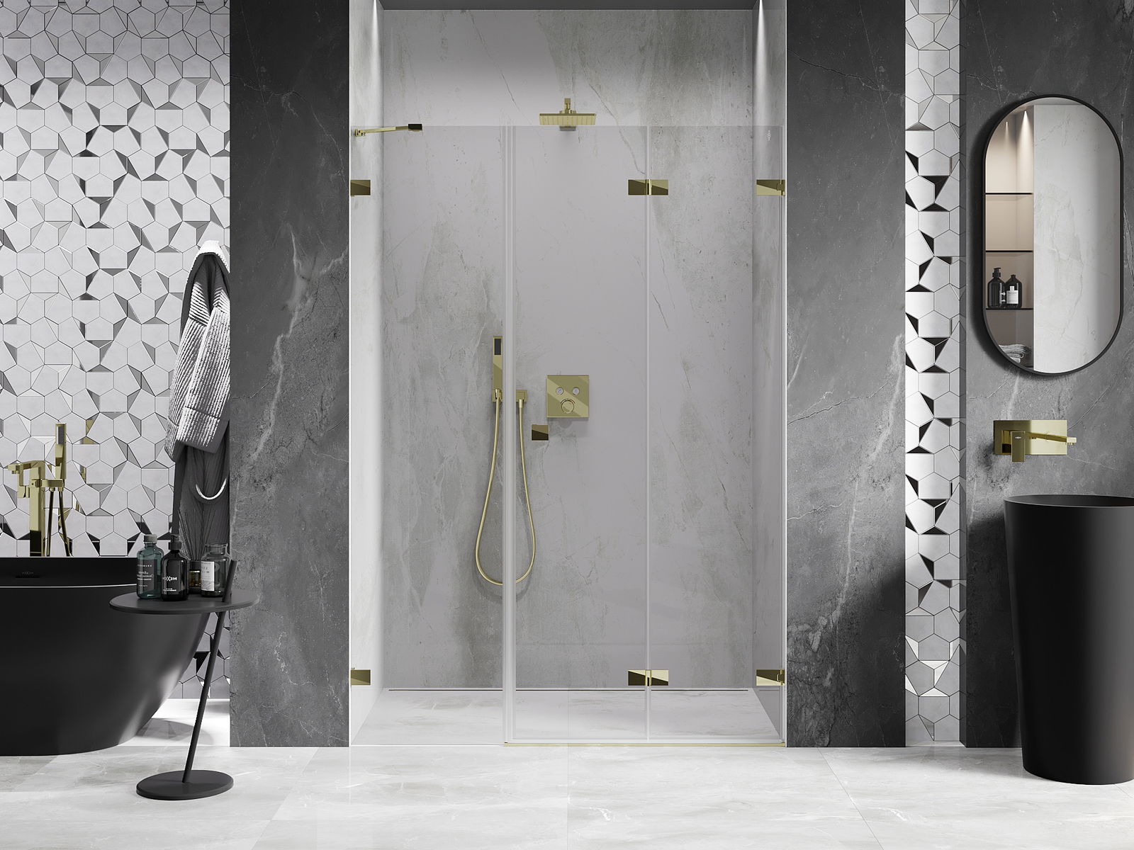 Mexen Lunar-F сгъваеми душ врати десни 110 см, прозрачни, златни - 836S-110-050-50-00-P