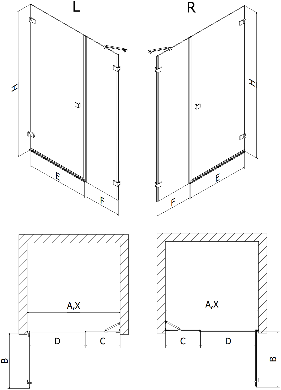 Дебелина на стъклото: врата 6 мм, стена 8 мм