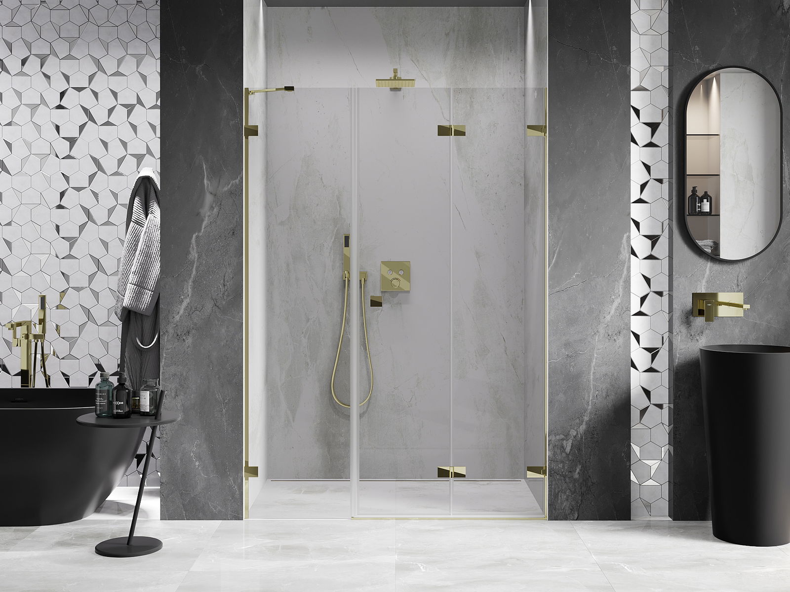 Mexen Lunar-F сгъваеми душ врати десни 140 см, прозрачни, златисти - 836S-140-050-50-00-P