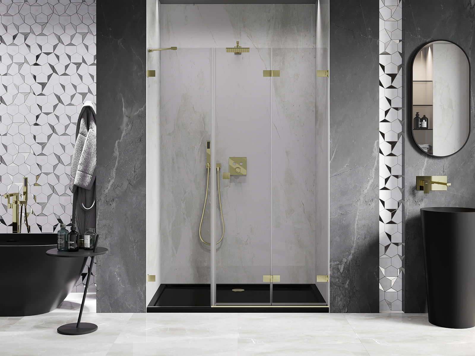 Mexen Lunar-F сгъваеми врати за душ, десни 140 см, прозрачни, златни матови - 836S-140-050-55-00-P