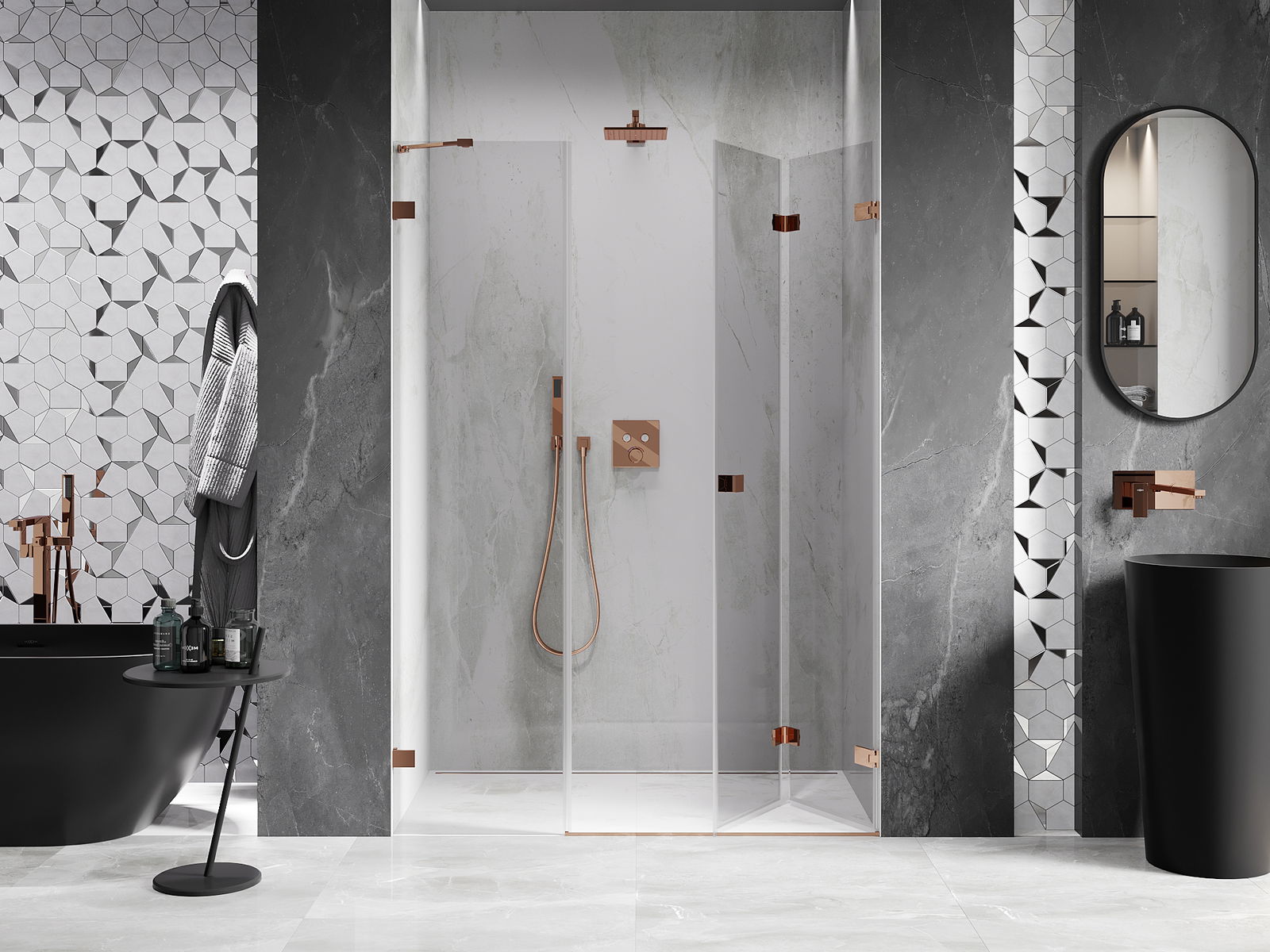 Mexen Lunar-F сгъваеми душ врати десни 125 см, прозрачни, розово злато - 836S-125-050-60-00-P