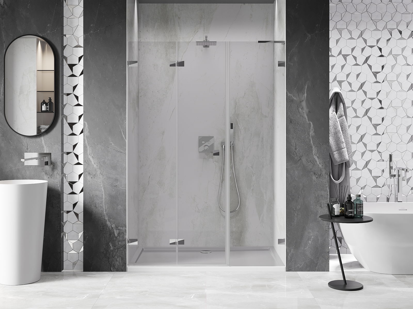 Възможността за сгъване на вратите, както навън, така и навътре, позволява да се осигури повече пространство, когато душът не се използва. Това е идеалното решение за по-малки бани, максимално използвайки наличната площ.