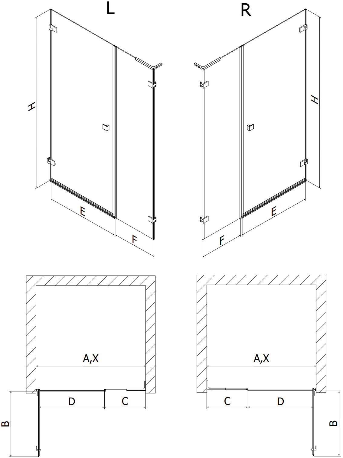 Дебелина на стъклото: врати 6 мм, стена 8 мм