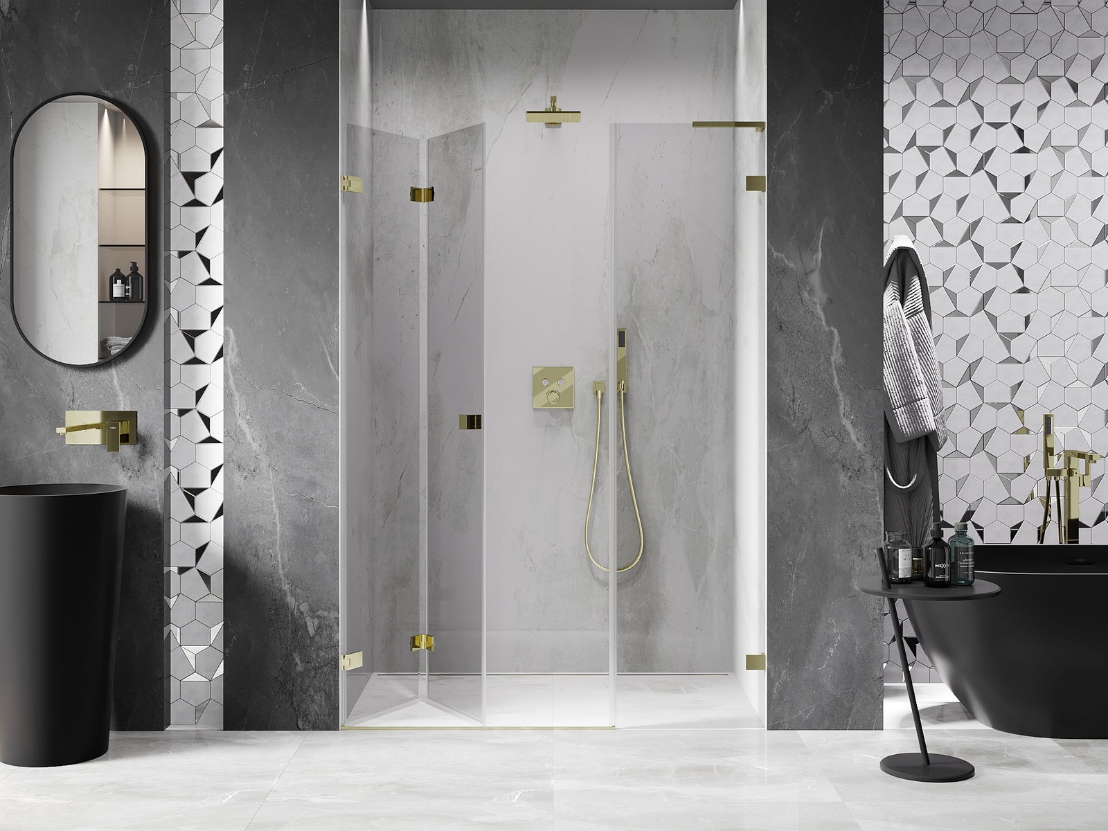 Възможността за сгъване на вратите, както навън, така и навътре, позволява да се осигури повече пространство, когато душът не се използва. Това е идеалното решение за по-малки бани, максимално използвайки наличната площ.