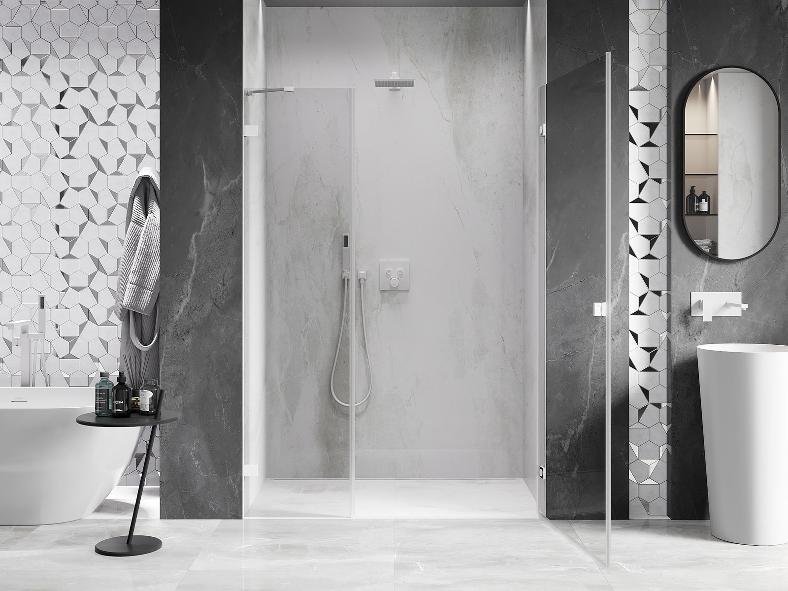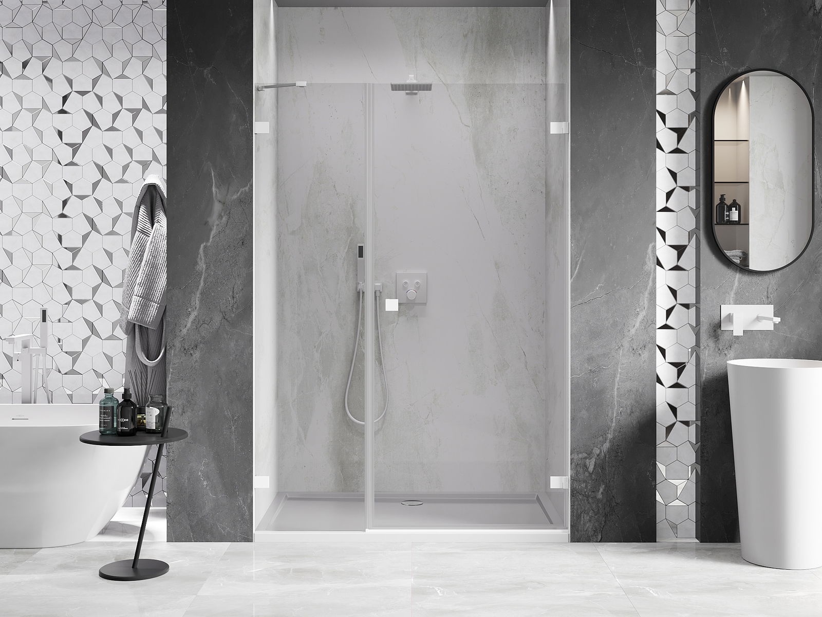 Mexen Lunar-B врати за душ кабина, отварящи се надясно, 135 см, прозрачни, бели - 832S-135-050-20-00-P