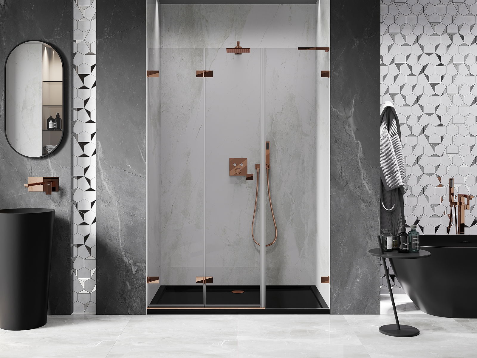 Mexen Lunar-F L сгъваеми леви душ врати 145 см, прозрачни, розово злато - 836SL-145-050-60-00-L