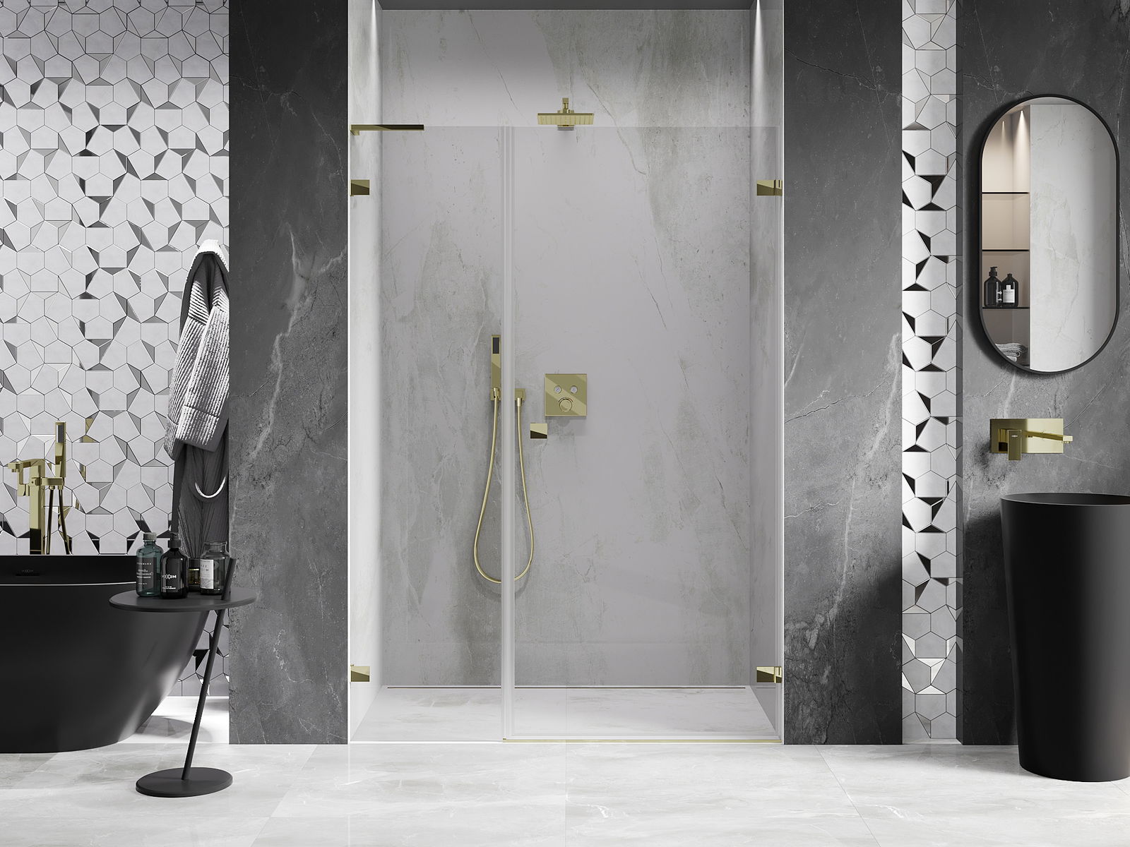 Скобите са изработени от много здрав месинг и създават изравнена повърхност на стъклото. Това е отличен избор, който съчетава елегантност, издръжливост и модерен дизайн. Благодарение на тези решения душът получава естетическа стойност и същевременно улеснява поддържането на чистота.