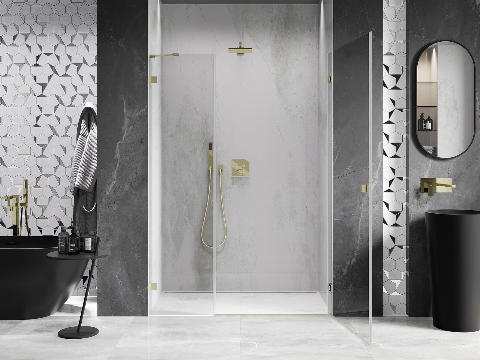 Скобите са изработени от много здрав месинг и създават изравнена повърхност на стъклото. Това е отличен избор, който съчетава елегантност, издръжливост и модерен дизайн. Благодарение на тези решения душът получава естетическа стойност и същевременно улеснява поддържането на чистота.