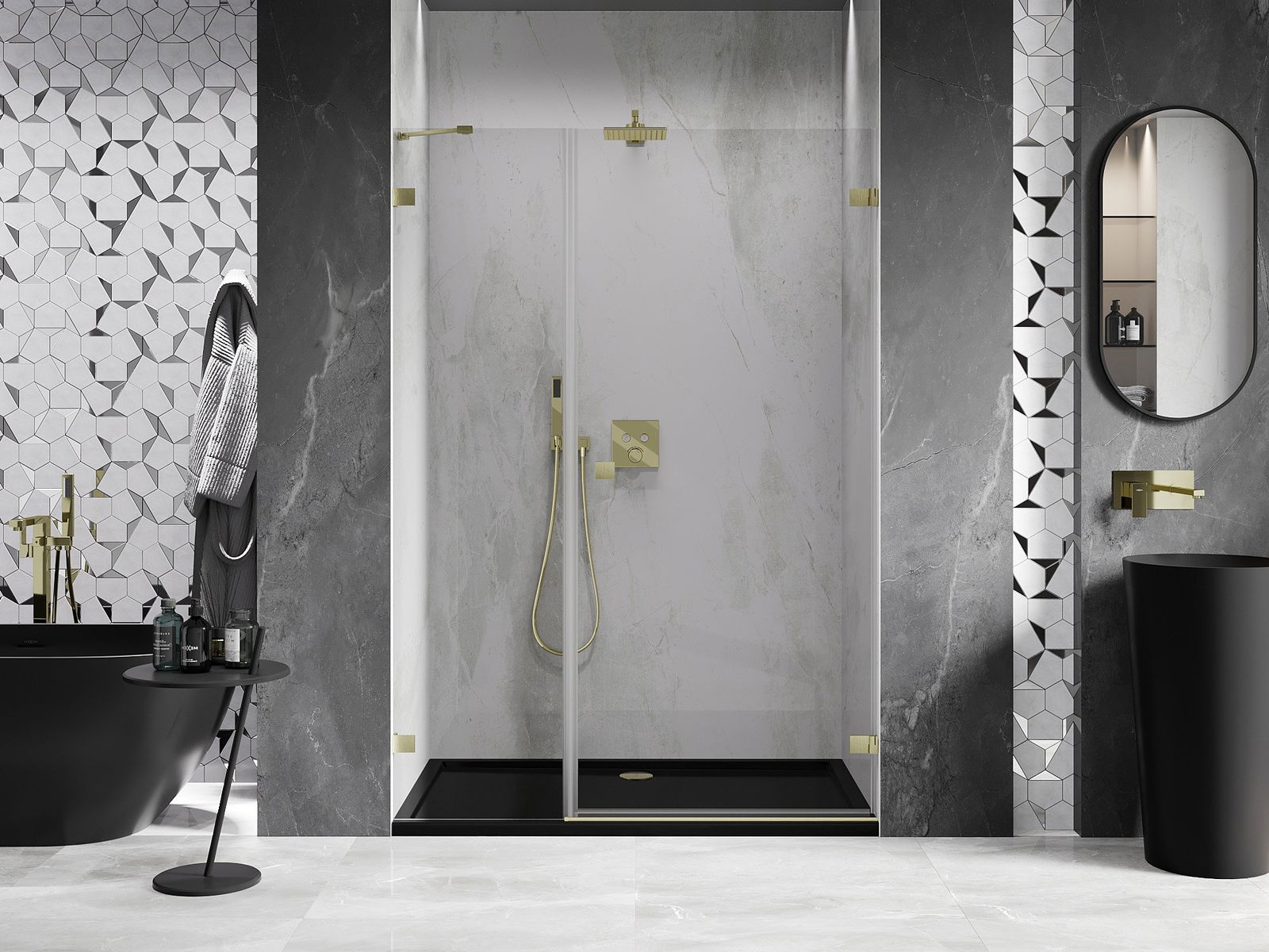 Скобите са изработени от много здрав месинг и създават изравнена повърхност на стъклото. Това е отличен избор, който съчетава елегантност, издръжливост и модерен дизайн. Благодарение на тези решения душът получава естетическа стойност и същевременно улеснява поддържането на чистота.