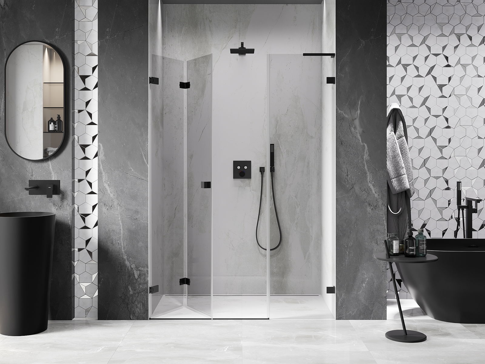 Възможността за сгъване на вратите, както навън, така и навътре, позволява да се осигури повече пространство, когато душът не се използва. Това е идеалното решение за по-малки бани, максимално използвайки наличната площ.