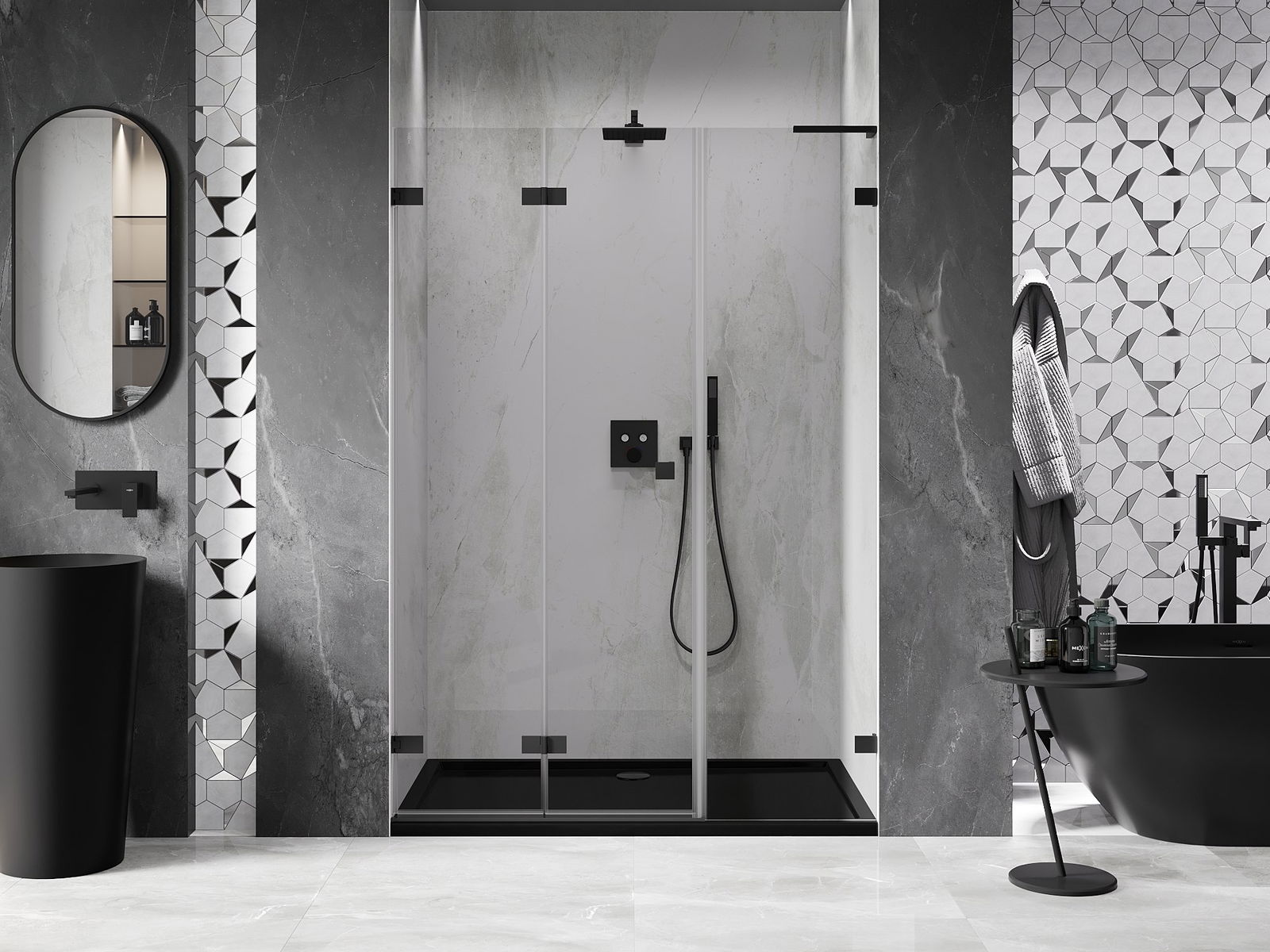 Mexen Lunar-F L сгъваеми леви врати за душ 130 см, прозрачни, черни - 836SL-130-050-70-00-L