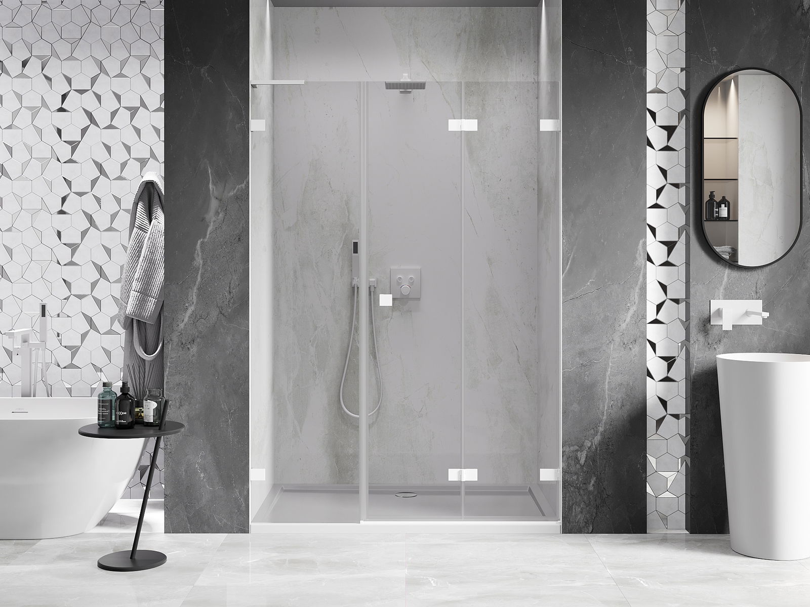 Mexen Lunar-F L сгъваеми врати за душ десни 125 см, прозрачни, бели - 836SL-125-050-20-00-P