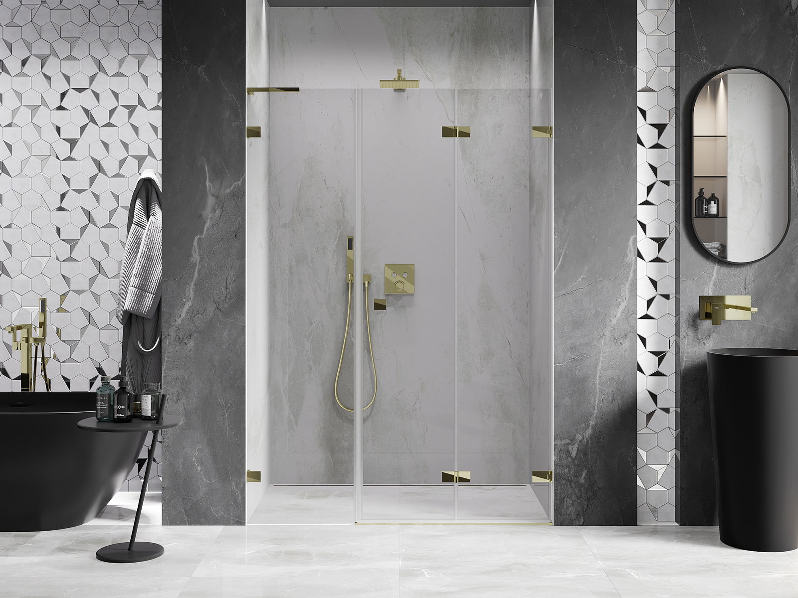 Mexen Lunar-F L сгъваеми душ врати десни 110 cm, прозрачни, златни - 836SL-110-050-50-00-P