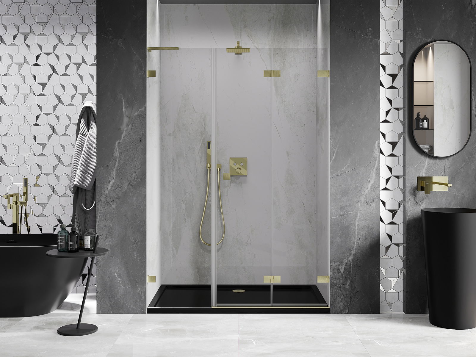 Възможността за сгъване на вратите, както навън, така и навътре, позволява да се осигури повече пространство, когато душът не се използва. Това е идеалното решение за по-малки бани, максимално използвайки наличната площ.