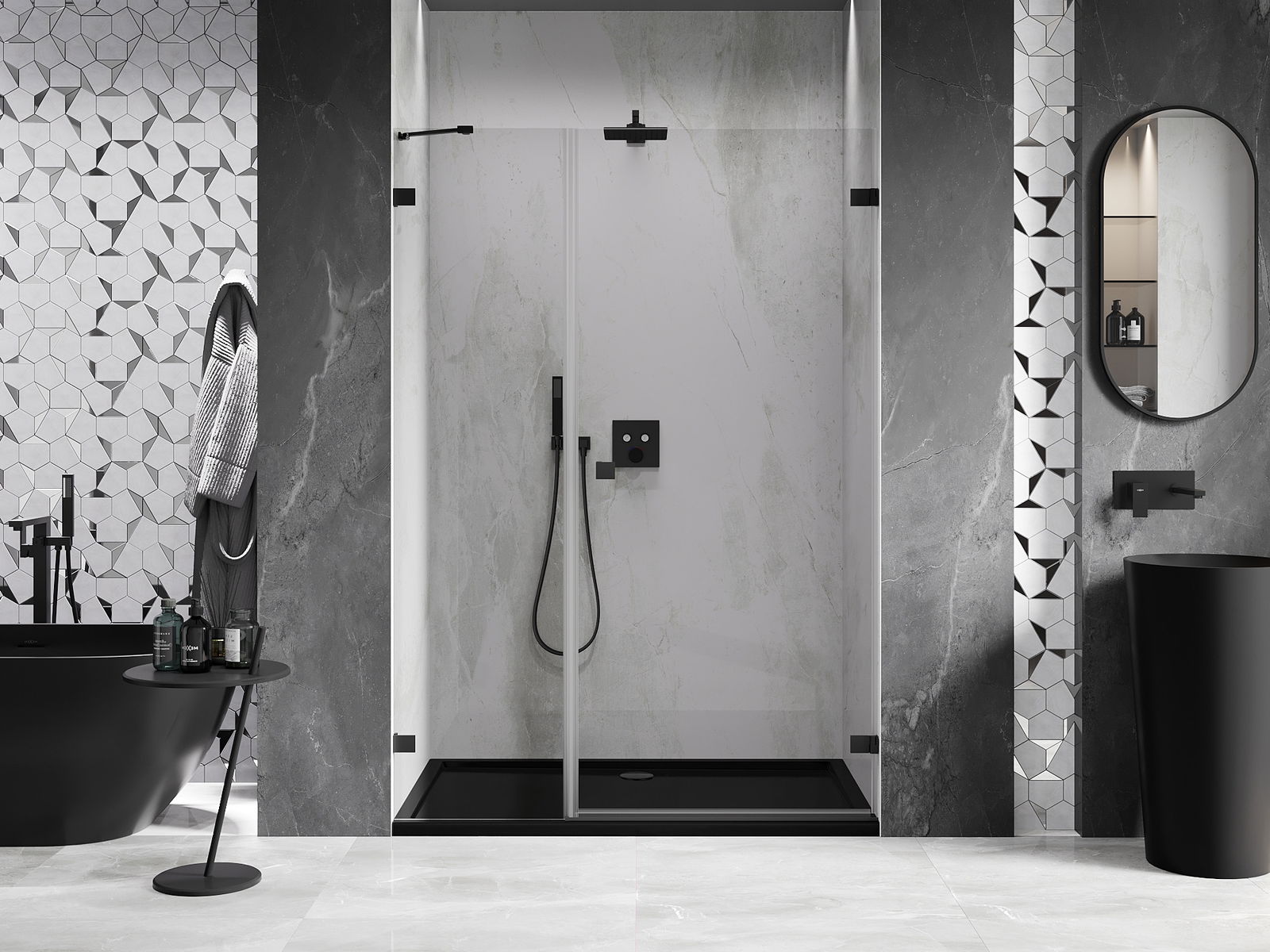 Mexen Lunar-B панти за душ кабина десни 125 см, прозрачни, черни - 832S-125-050-70-00-P