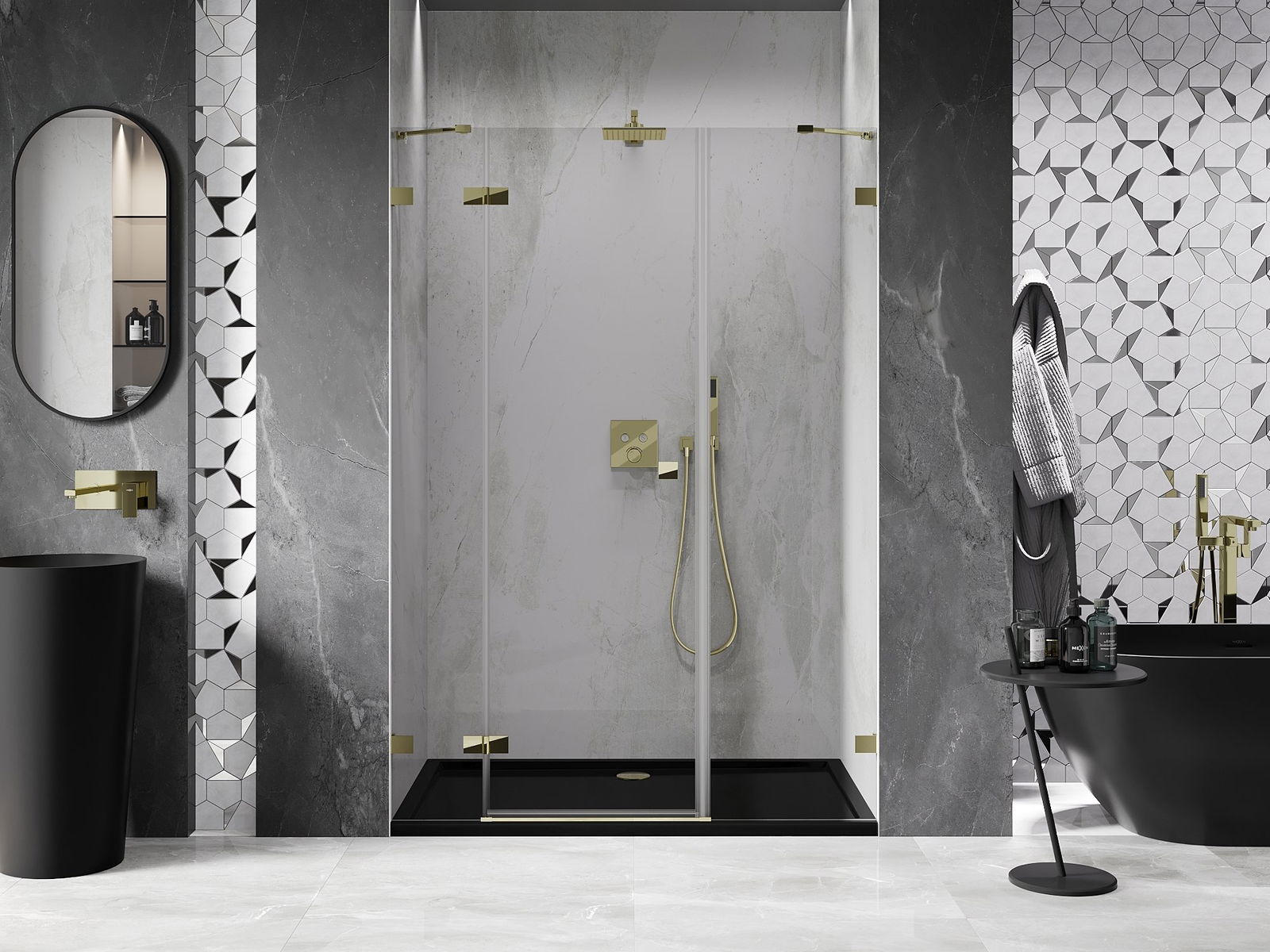 Mexen Lunar врати за душ плъзгащи се леви 130 см, прозрачни, златни - 834S-130-050-50-00-L