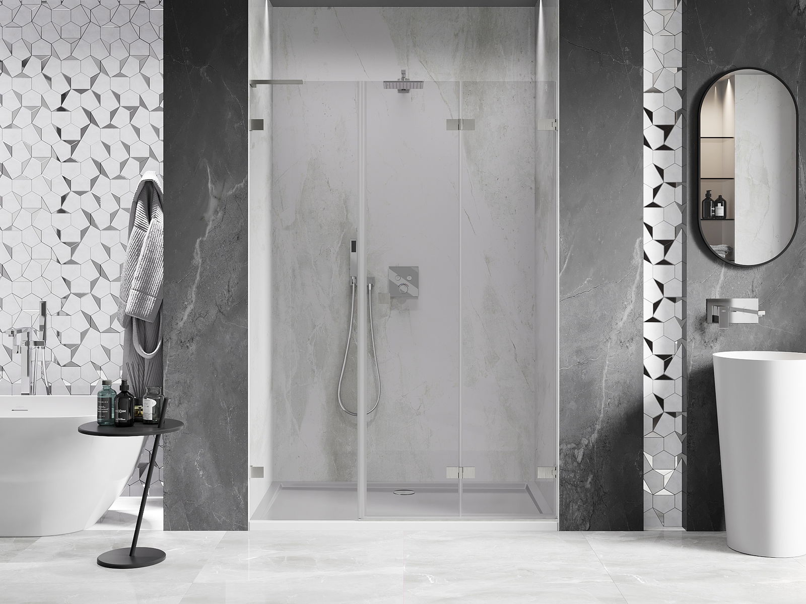 Възможността за сгъване на вратите, както навън, така и навътре, позволява да се осигури повече пространство, когато душът не се използва. Това е идеалното решение за по-малки бани, максимално използвайки наличната площ.