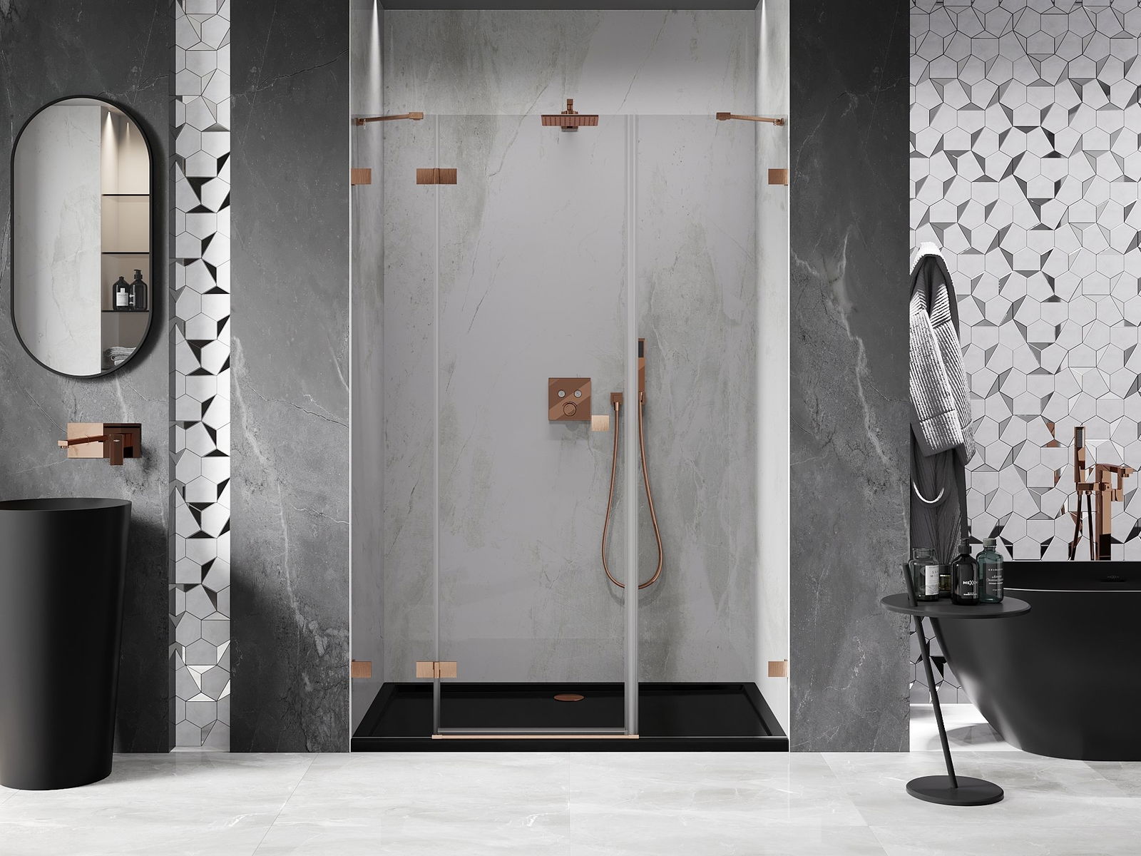 Mexen Lunar Люлееща се душ врата лява 135 см, прозрачна, четкана мед - 834S-135-050-65-00-L