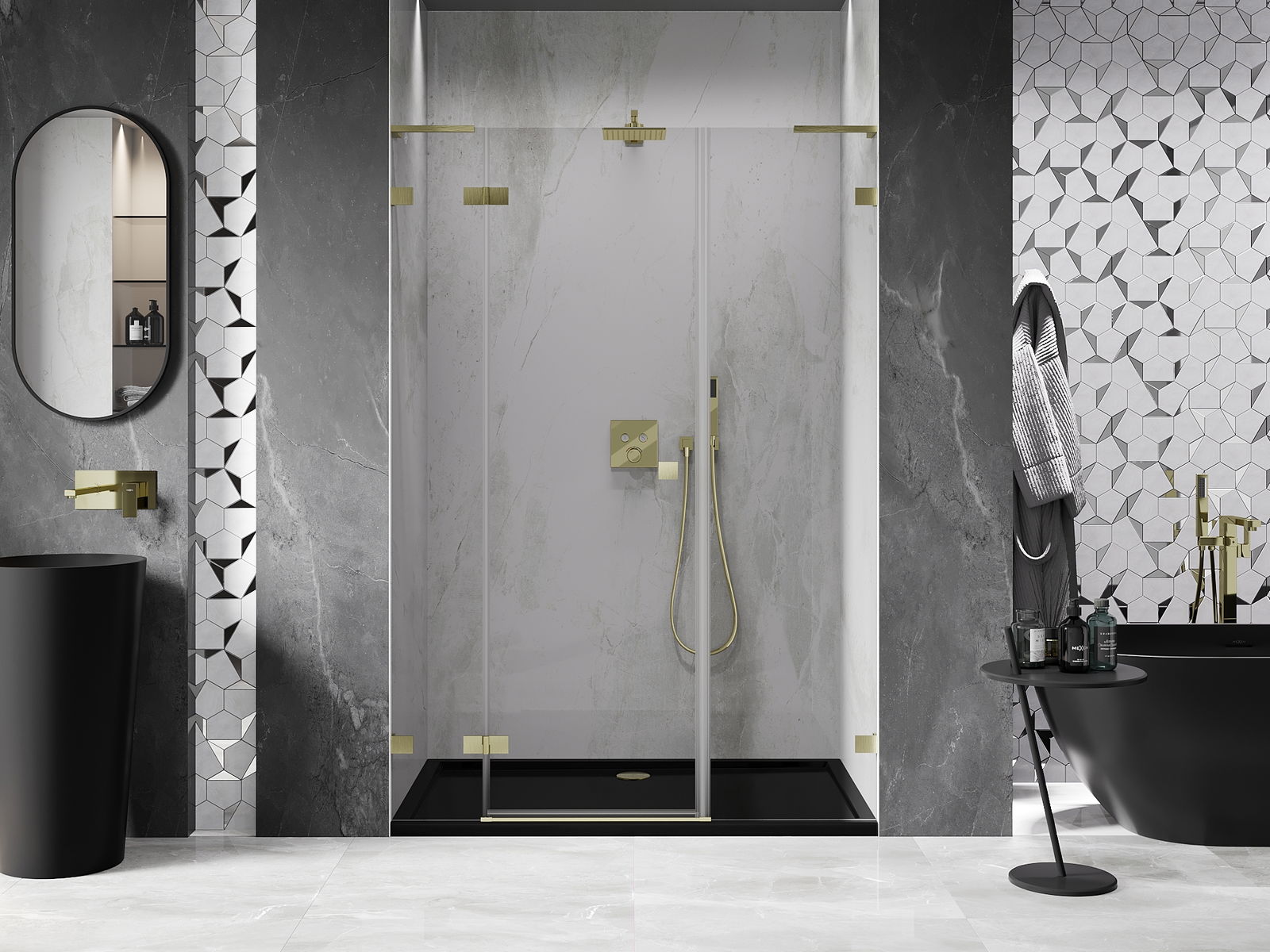 Mexen Lunar L лява душ кабина с отваряща се врата 125 см, прозрачно, златисто четкавано - 834SL-125-050-55-00-L