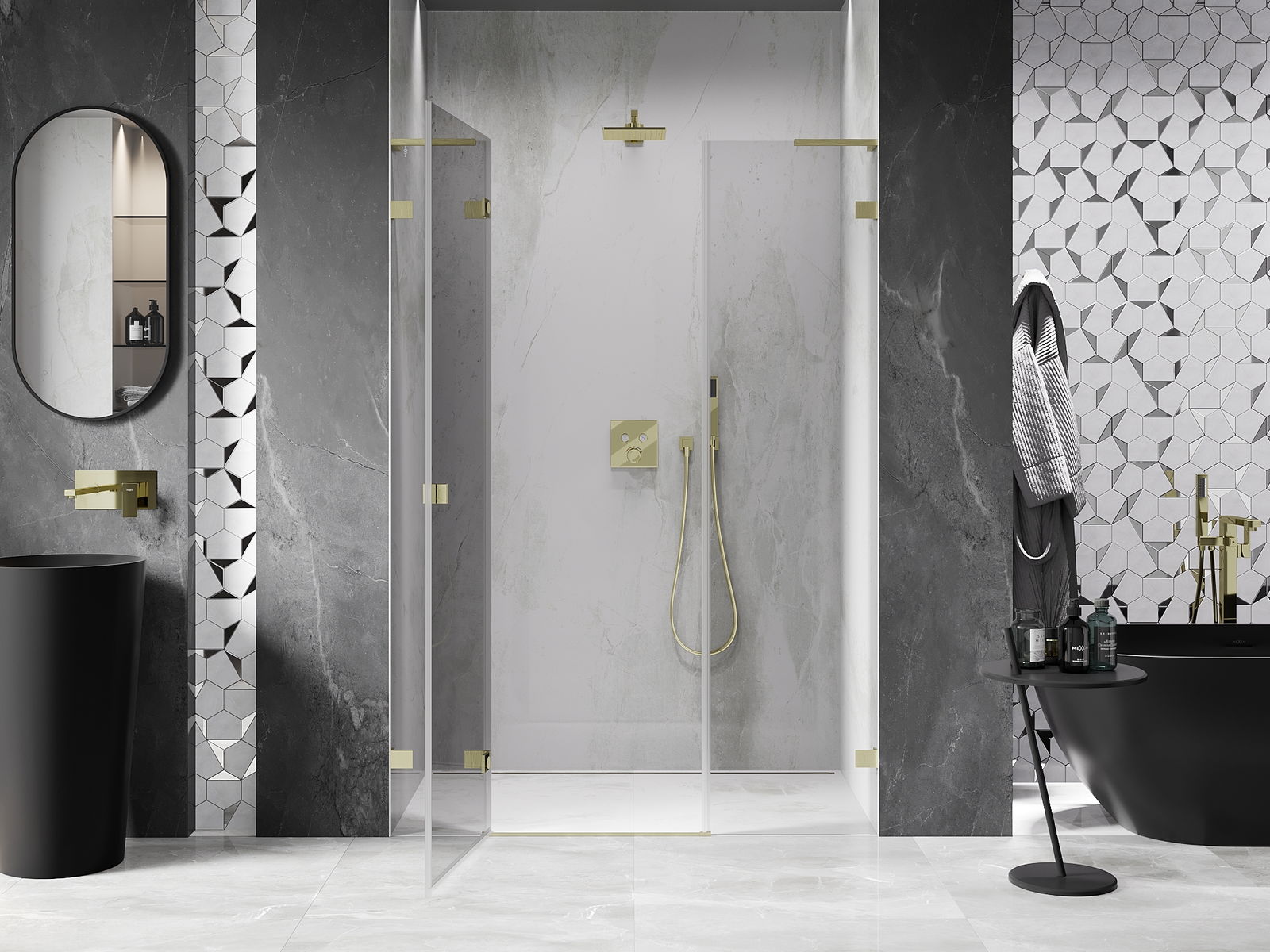 Mexen Lunar L врати за душ кабина, отваряеми наляво 135 см, прозрачни, златни матови - 834SL-135-050-55-00-L