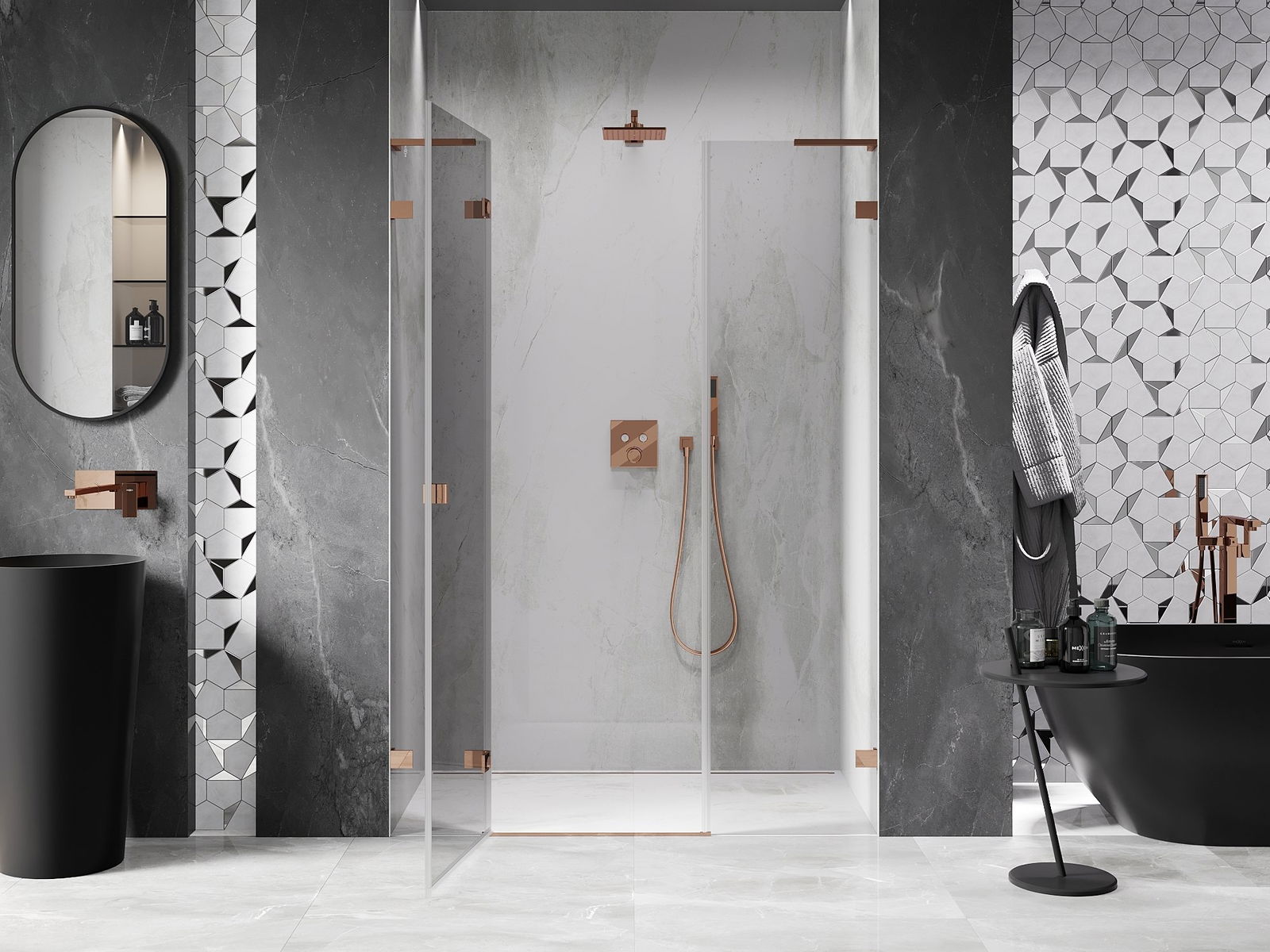 Mexen Lunar L ляво отваряща се душ врата 120 cm, прозрачна, розово злато - 834SL-120-050-60-00-L
