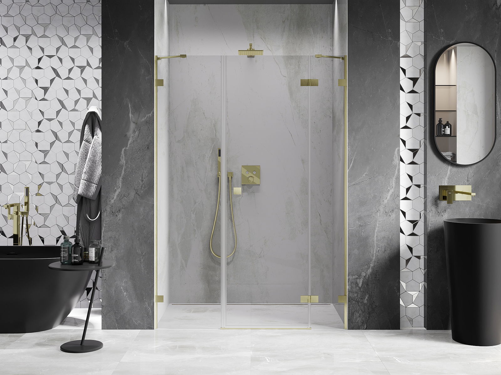 Mexen Lunar душ врати отваряеми навън десни 130 см, прозрачни, златисти матирани - 834S-130-050-55-00-P