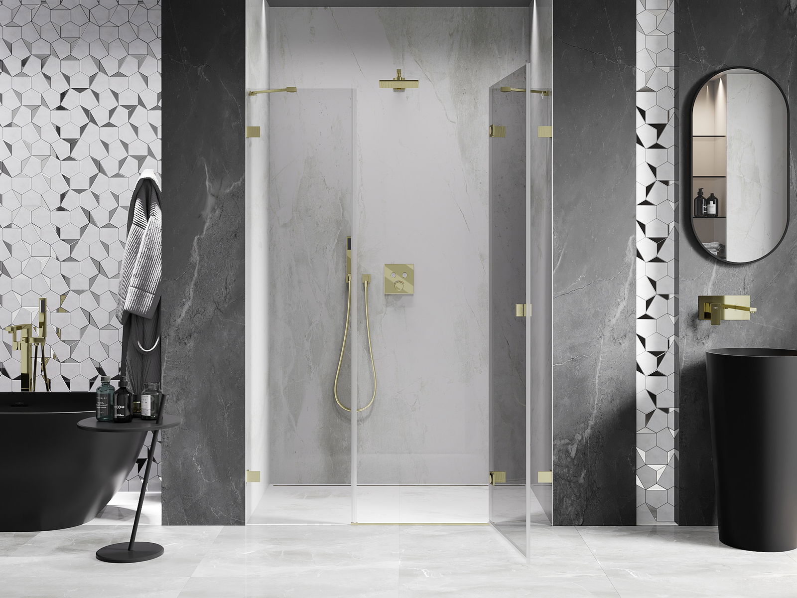 Mexen Lunar душ кабина с отварящи се врати дясна 135 см, прозрачна, златна матирана - 834S-135-050-55-00-P