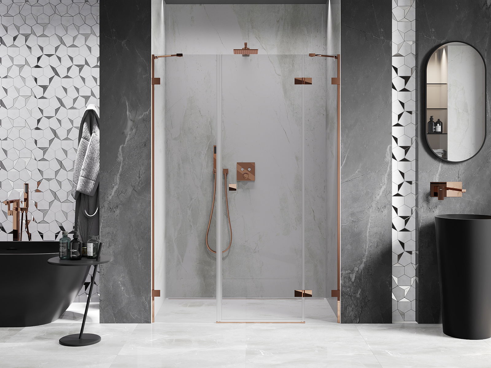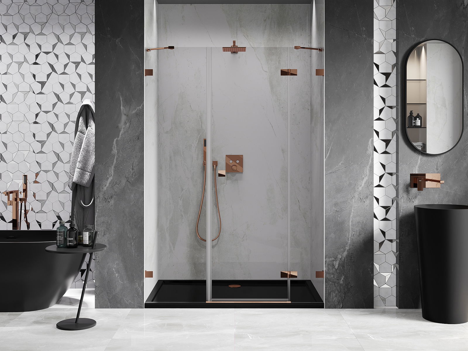 Mexen Lunar душ врати с отворяне надясно 130 см, прозрачни, розово злато