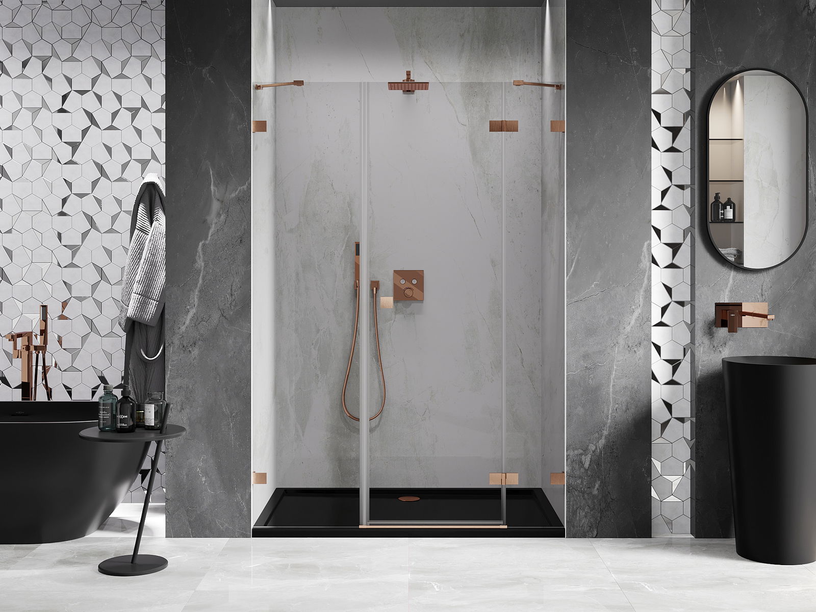Mexen Lunar врати за душ кабина, отваряеми на дясно, 150 см, прозрачни, четкана мед - 834S-150-050-65-00-P