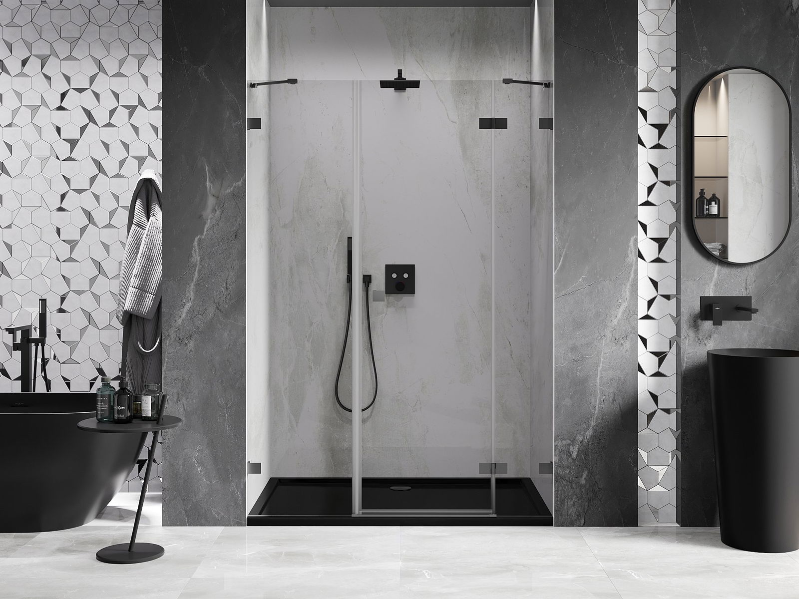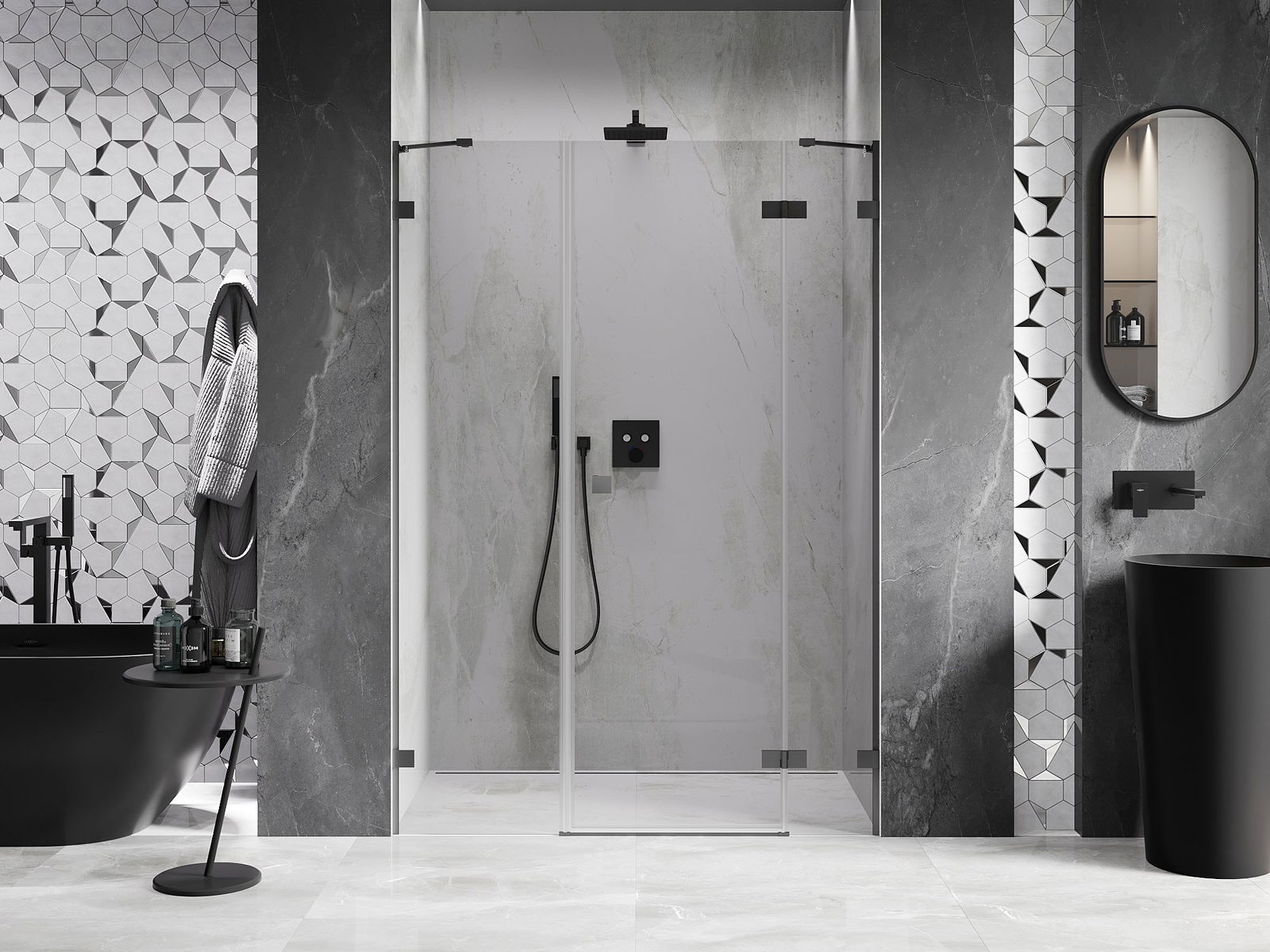 Скобите и пантите са изработени от много издръжлив месинг и създават плосък стъклен панел. Това е отличен избор, който съчетава елегантност, издръжливост и модерен дизайн. Благодарение на такива решения, душът придобива естетика и същевременно улеснява поддържането на чистота.
