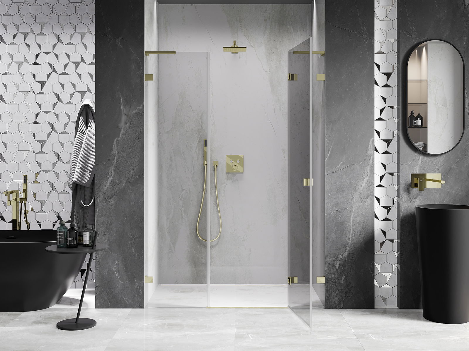 Mexen Lunar L душ врати с подвижна панта, дясно отваряне 155 см, прозрачно, златно - 834SL-155-050-50-00-P