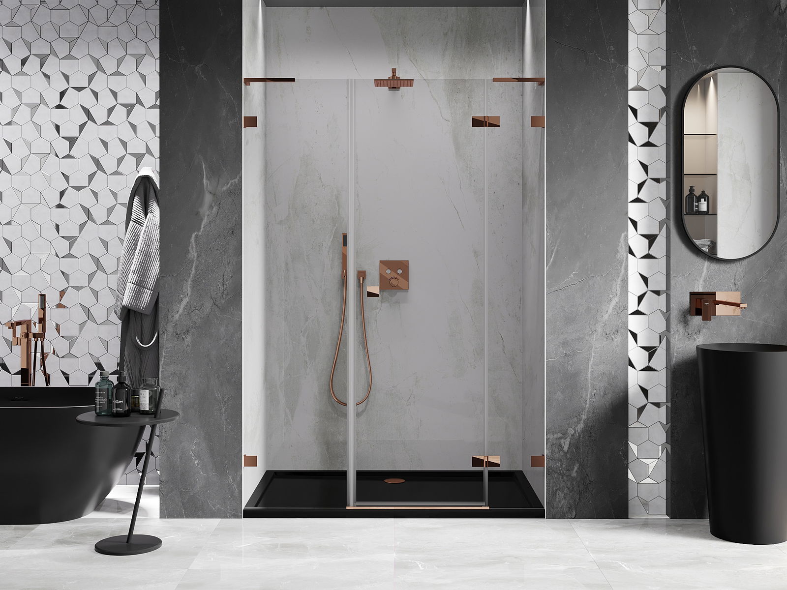 Mexen Lunar L душ врати с отваряне надясно 150 см, прозрачни, розово злато - 834SL-150-050-60-00-P