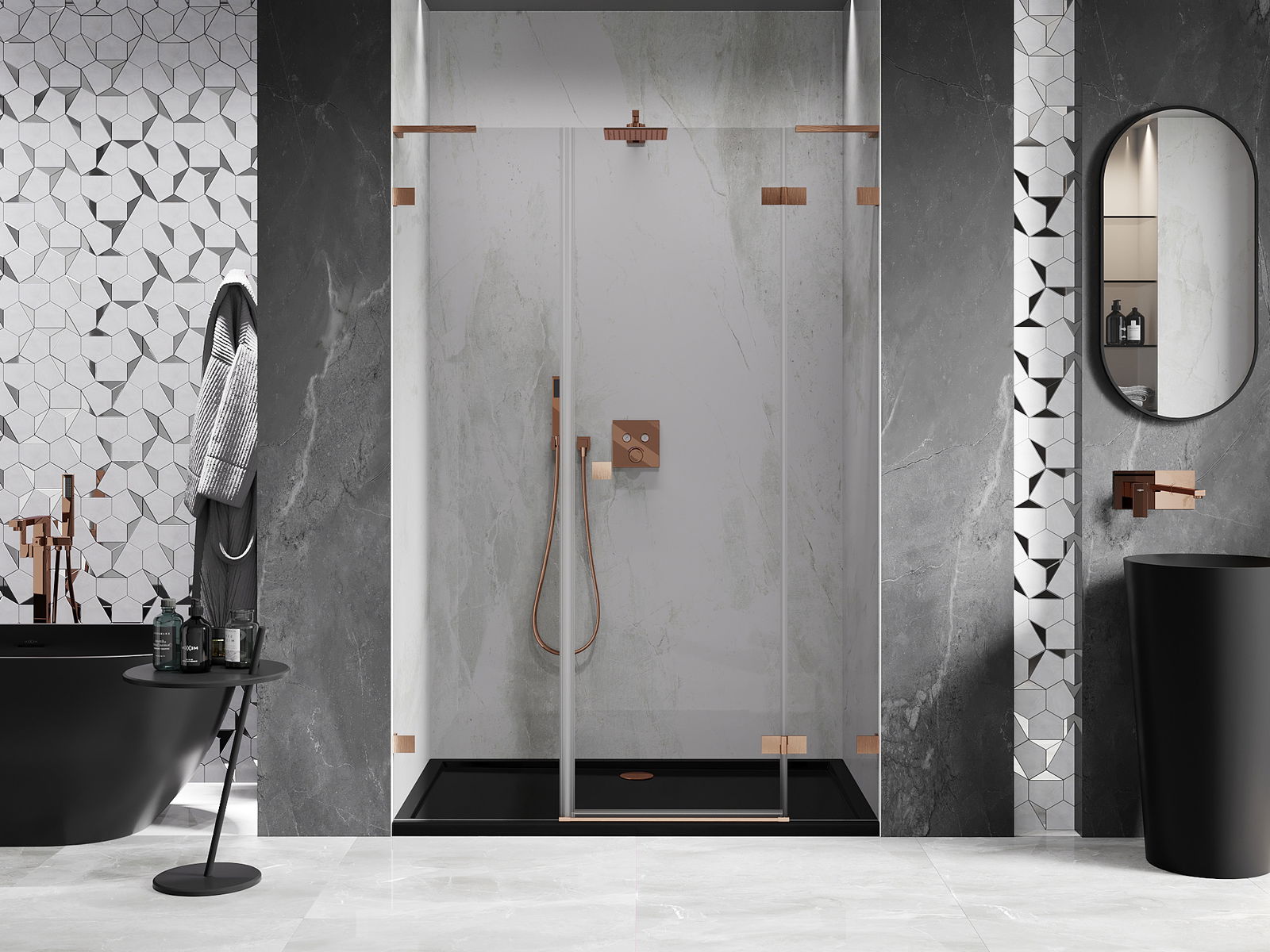 Mexen Lunar L врати за душ кабина отварящи се надясно 160 см, прозрачни, четкана мед - 834SL-160-050-65-00-P