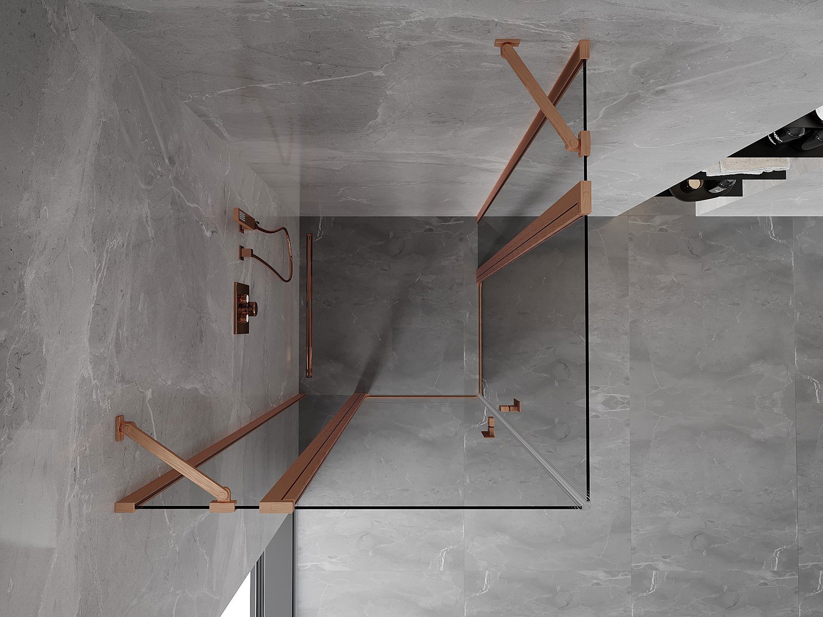 Удобната и практична дръжка е изработена от здрав и устойчив метал. Модерната форма в съчетание с покритието, съответстващо на цвета на профилите, придава на цялото модерен и стилен вид, подчертавайки естетиката на всяка баня.