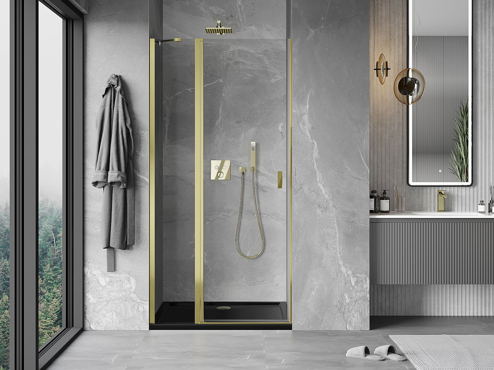 Удобната и практична дръжка е изработена от здрав и устойчив метал. Модерната форма в съчетание с покритието, съответстващо на цвета на профилите, придава на цялото модерен и стилен вид, подчертавайки естетиката на всяка баня.