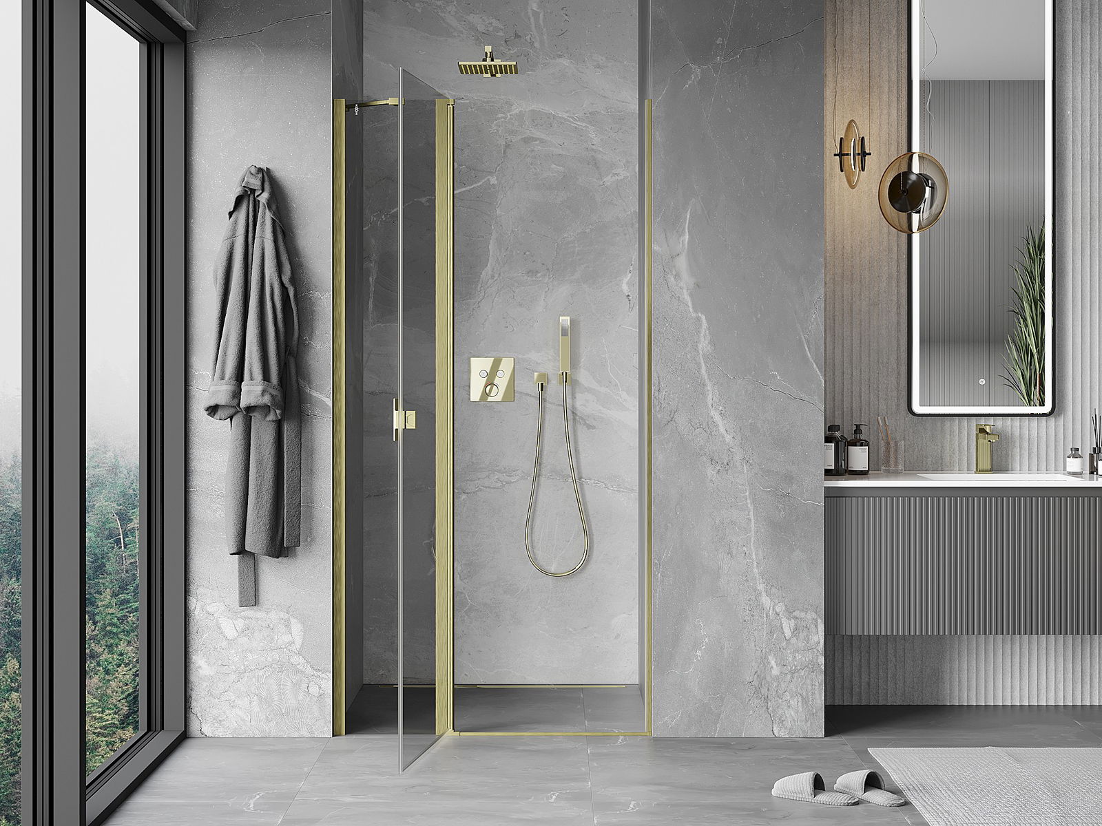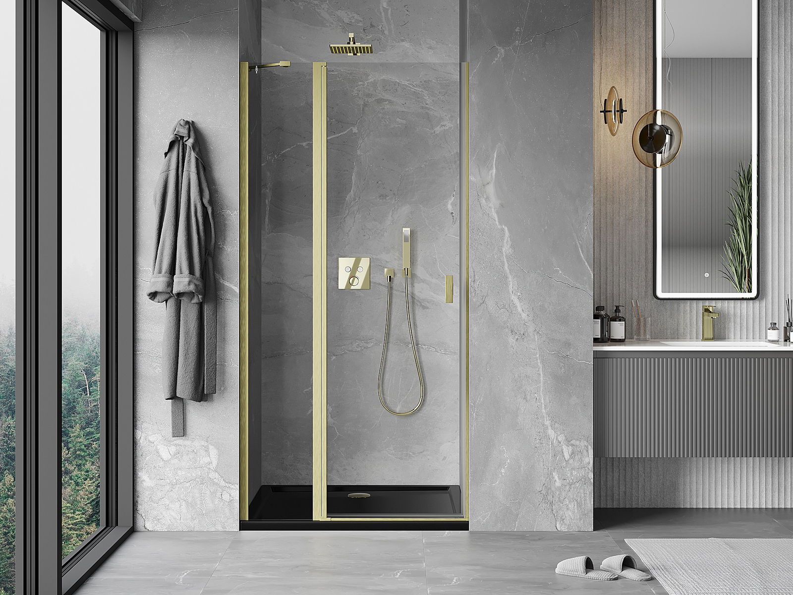 Mexen Mist еднокрили душ врати 75 см, прозрачни, златно четкосани - 8A4-075-000-55-00