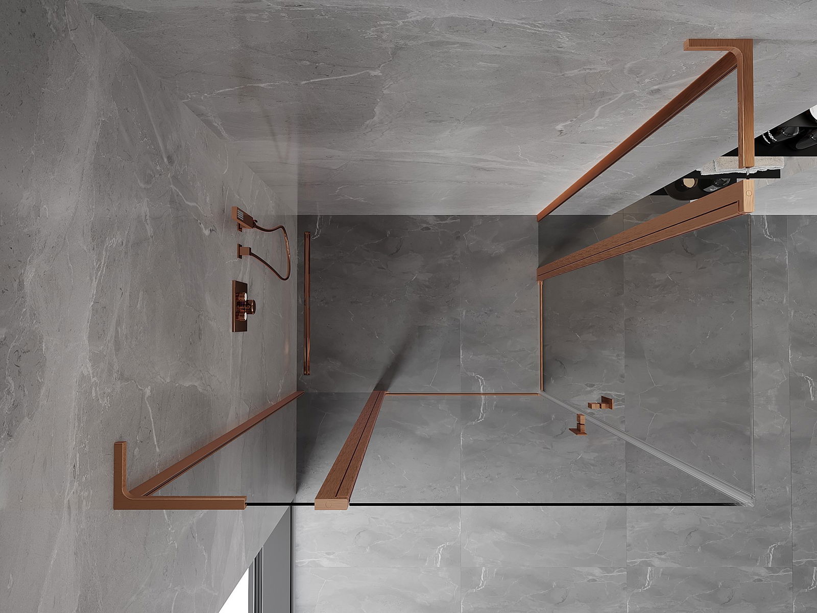 Mexen Mist L Duo отваряща се душ кабина 115 х 100 см, прозрачна, четкано медно покритие - 8A4L-115-100-65-00