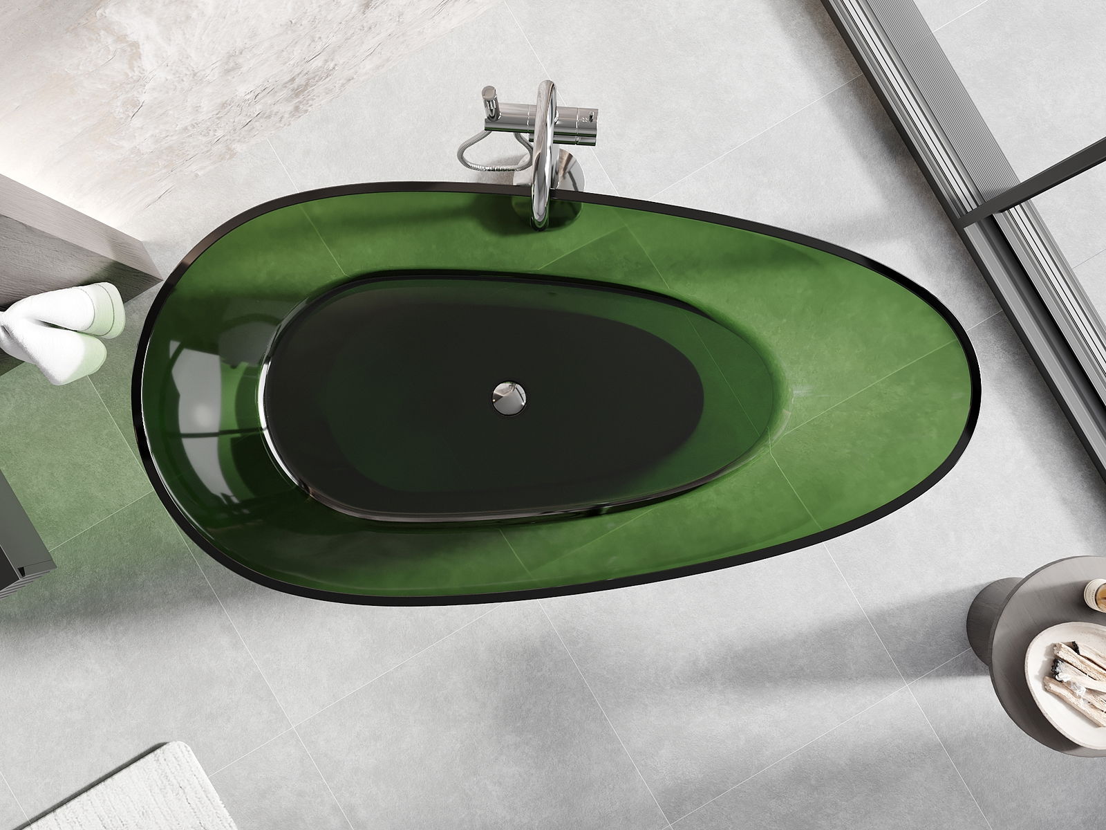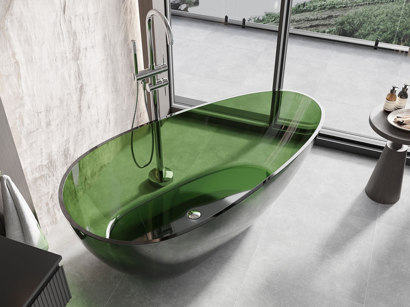 Това е модерен материал, който съчетава елегантен вид с висока издръжливост. Устойчив е на механични повреди, лесен за почистване и приятен на допир. Прозрачната форма и тънкият ръб на ваната ѝ придават лекота и уникален характер, създавайки ефектен акцент в подредбата на банята.