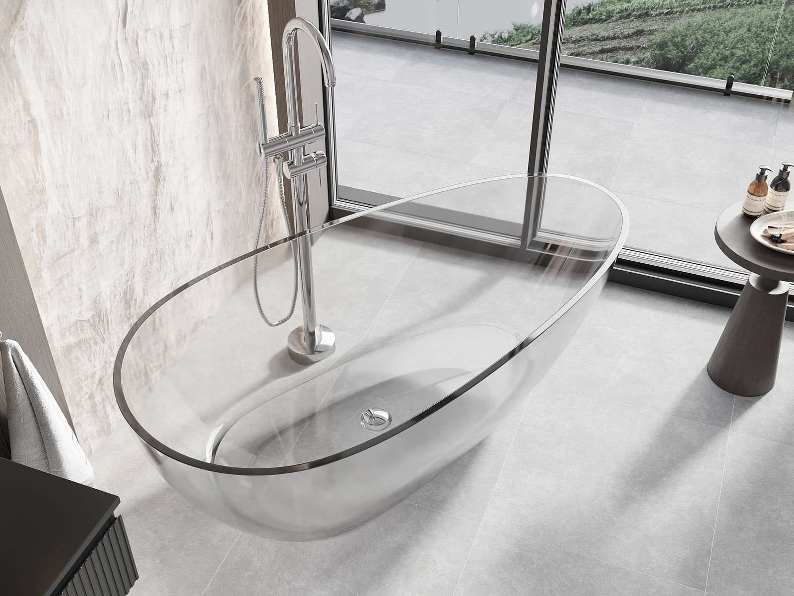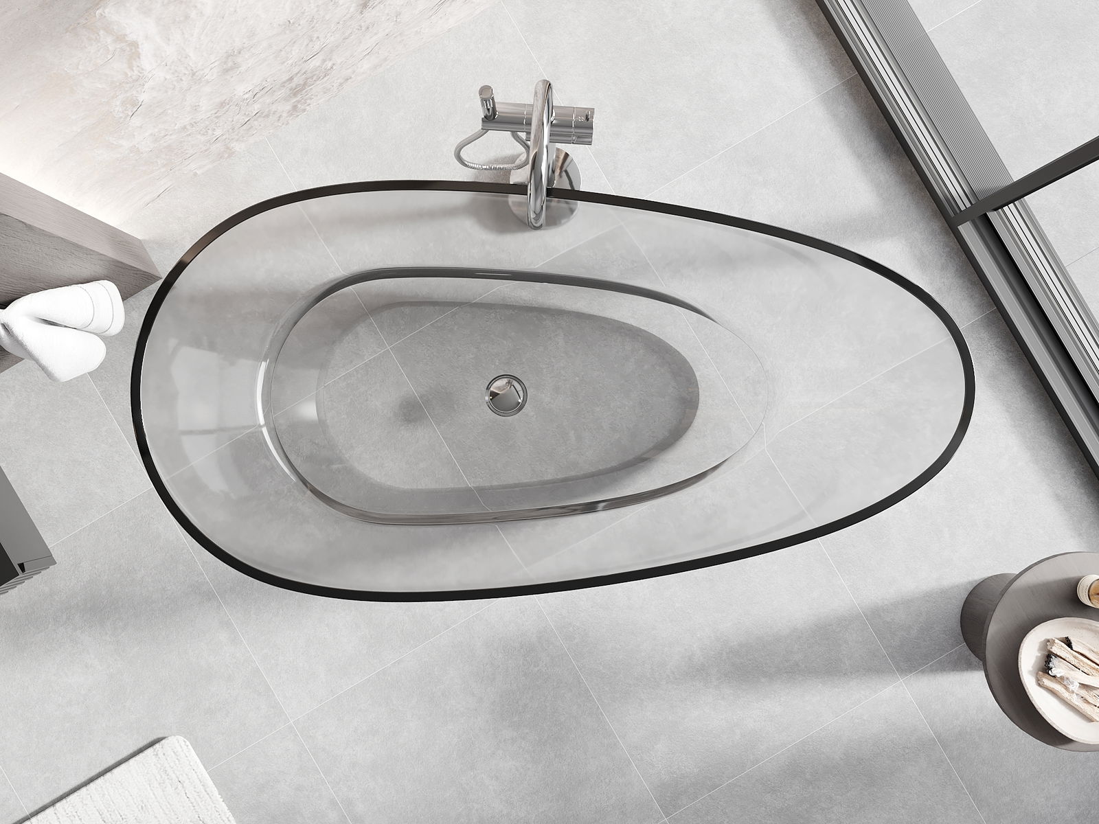 Това е модерен материал, който съчетава елегантен вид с висока издръжливост. Устойчив е на механични повреди, лесен за почистване и приятен на допир. Прозрачната форма и тънкият ръб на ваната ѝ придават лекота и уникален характер, създавайки ефектен акцент в подредбата на банята.