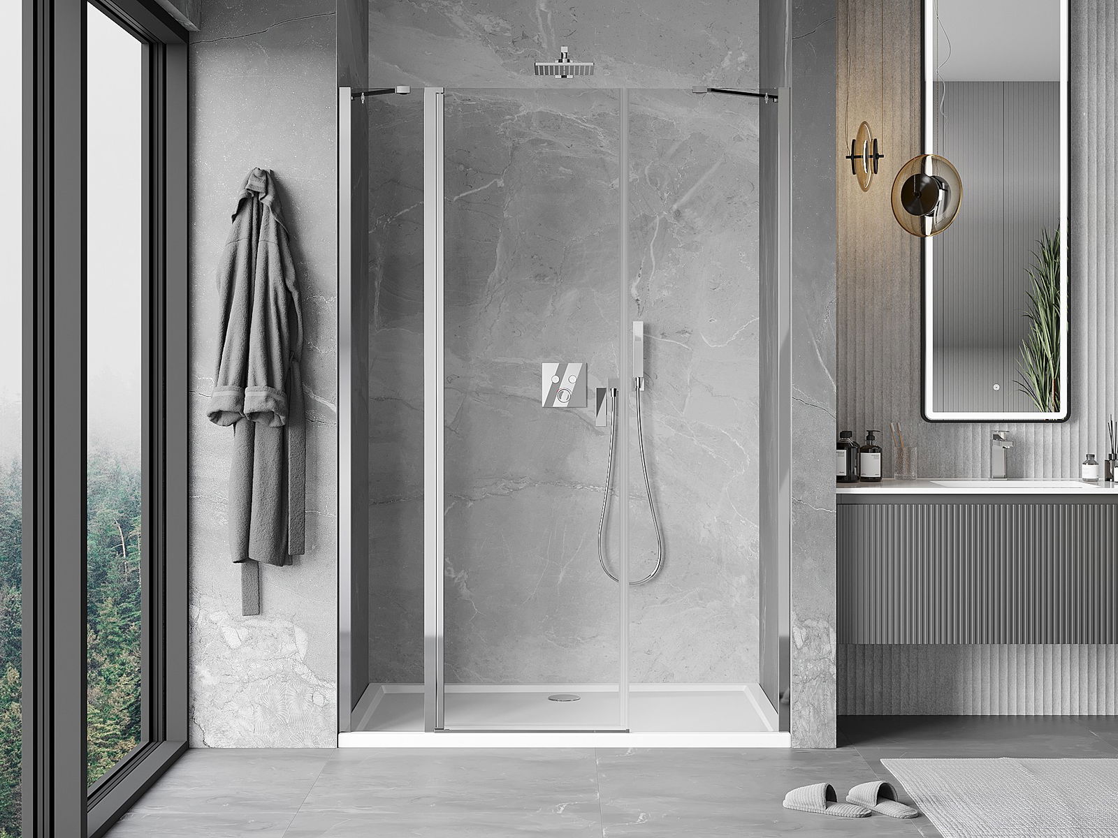 Благодарение на използването на универсалната система за монтаж, душовите врати могат да бъдат монтирани отдясно или отляво, в зависимост от нуждите. Благодарение на това можете лесно да проектирате душ, който е напаснат към пространството в банята.