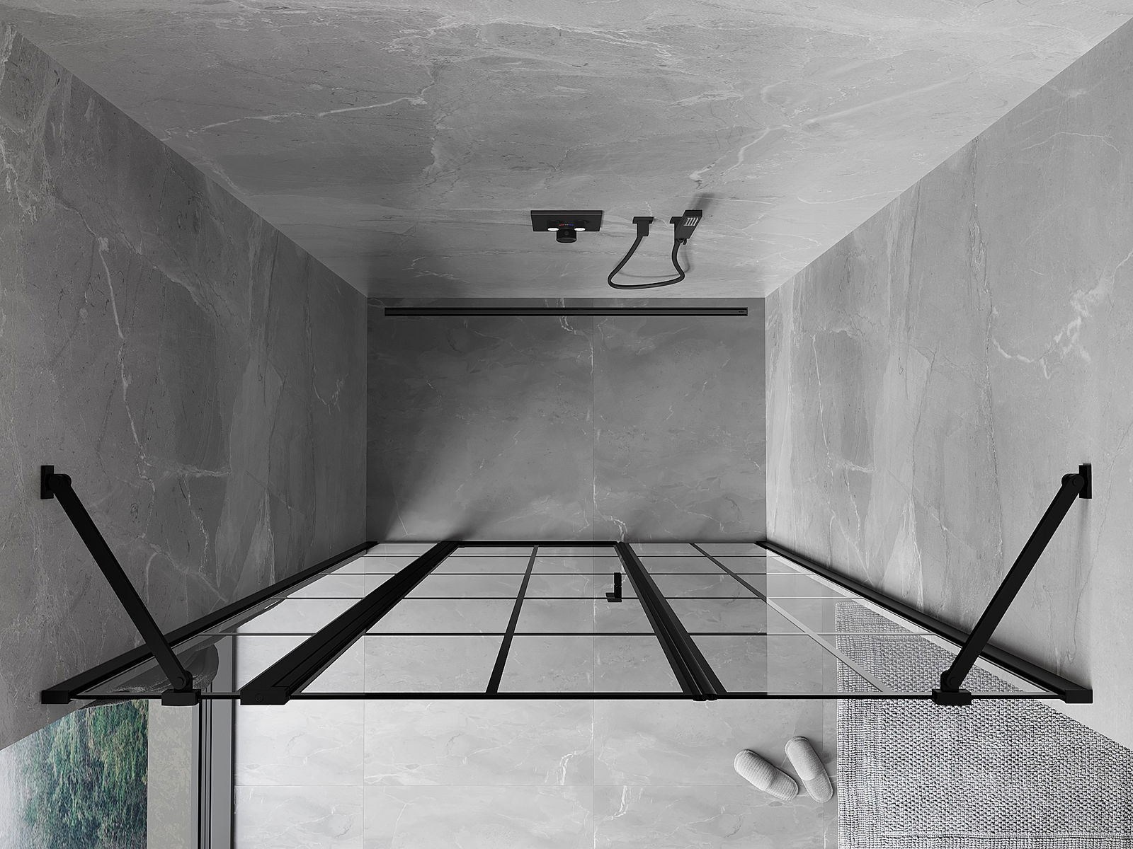 Mexen Mist лява люлееща се врата за душ 135 см, черна решетка, черно