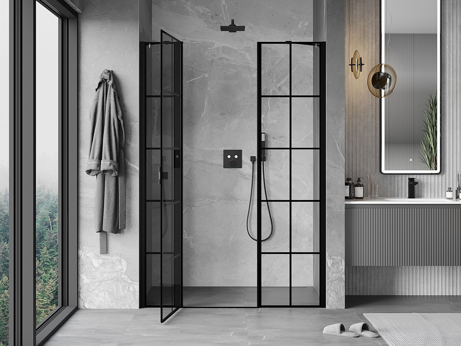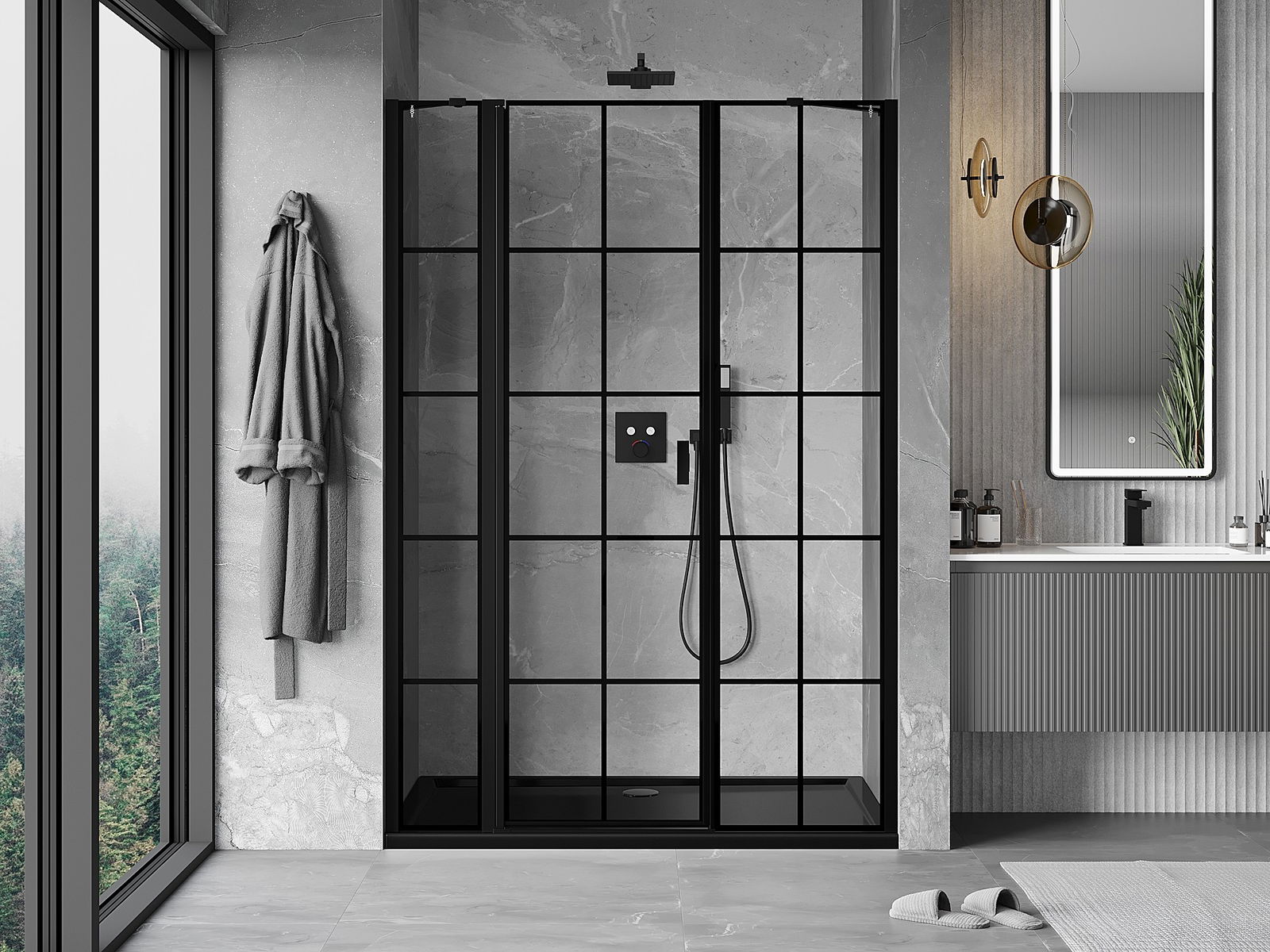 Удобната и практична дръжка е изработена от здрав и устойчив метал. Модерната форма в съчетание с покритието, съответстващо на цвета на профилите, придава на цялото модерен и стилен вид, подчертавайки естетиката на всяка баня.