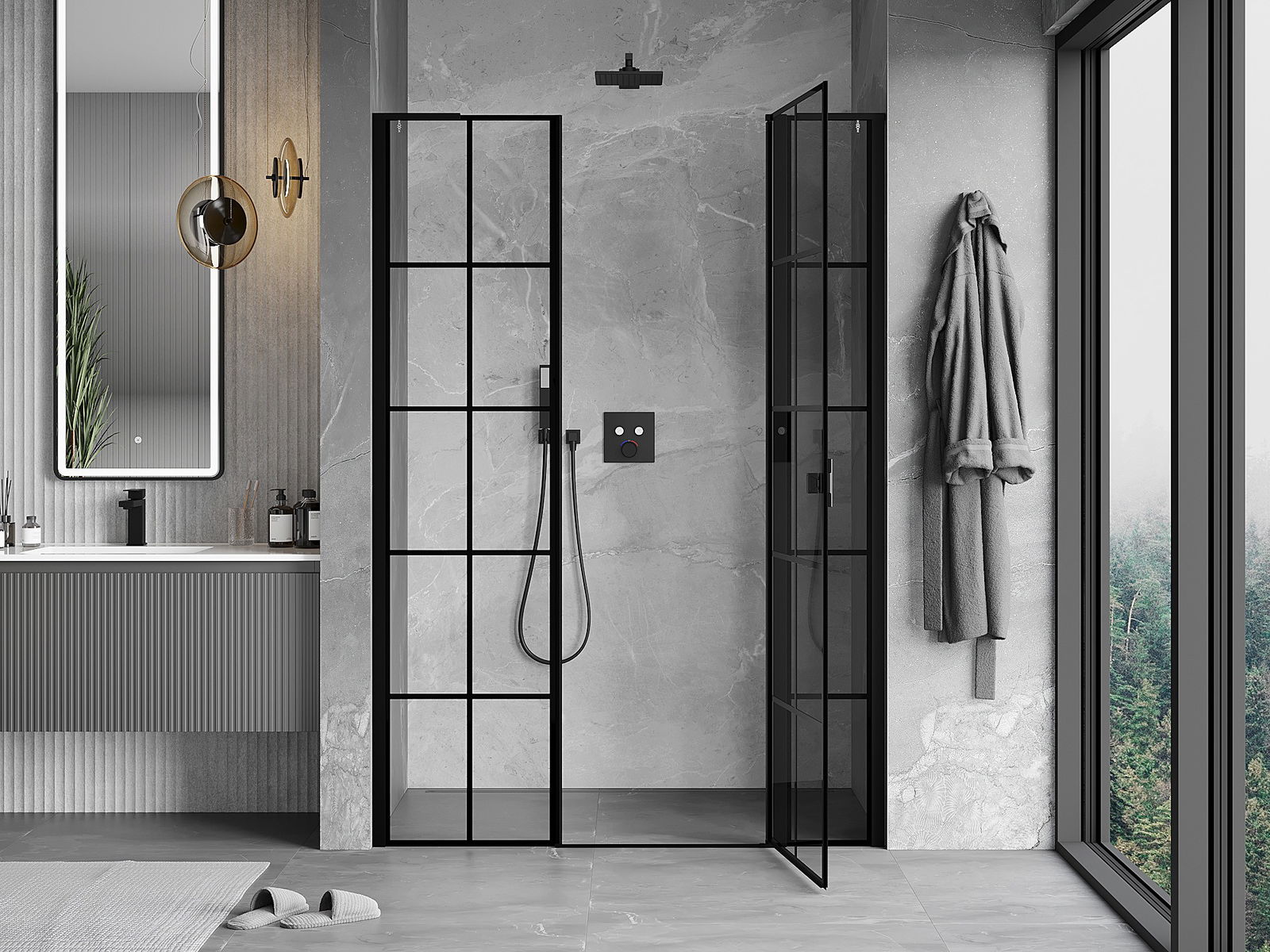 Mexen Mist L врата за душ кабина, отварящи се надясно 135 см, черна решетка, черни - 8A4L-135-001-70-77-P