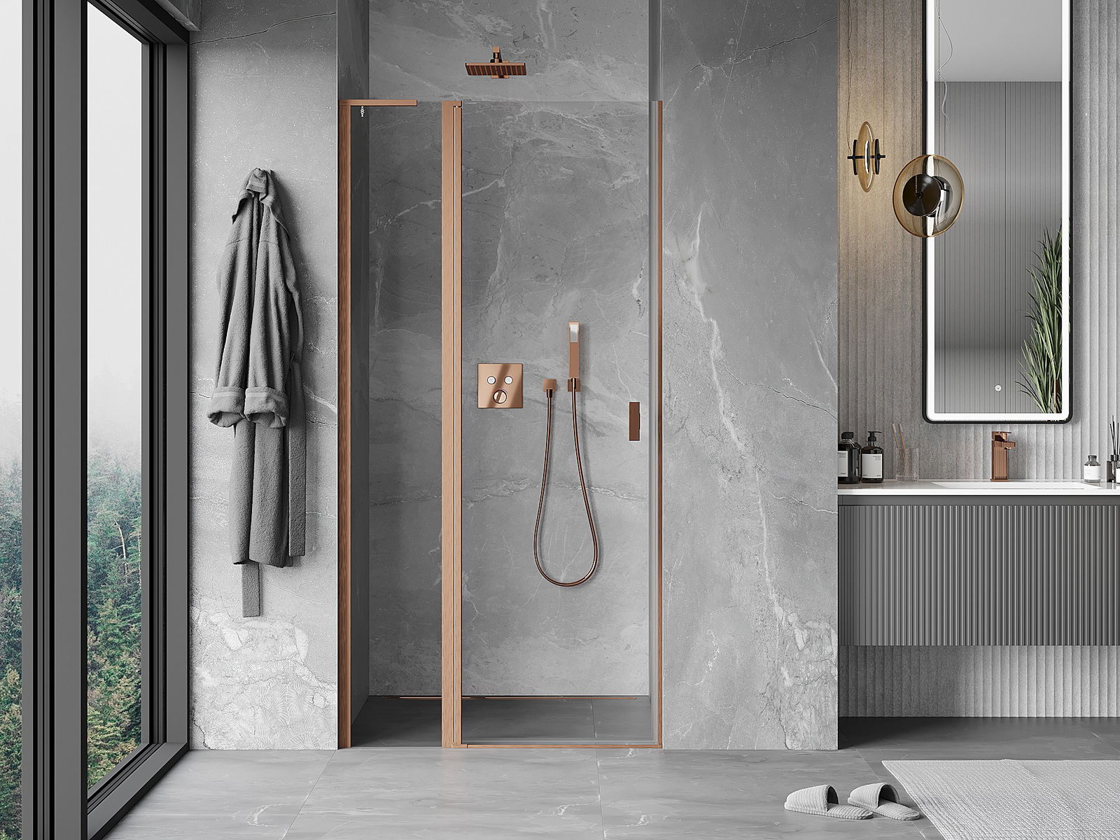Mexen Mist L врати за душ кабина отваряеми 90 см, прозрачен, матирана мед - 8A4L-090-000-65-00