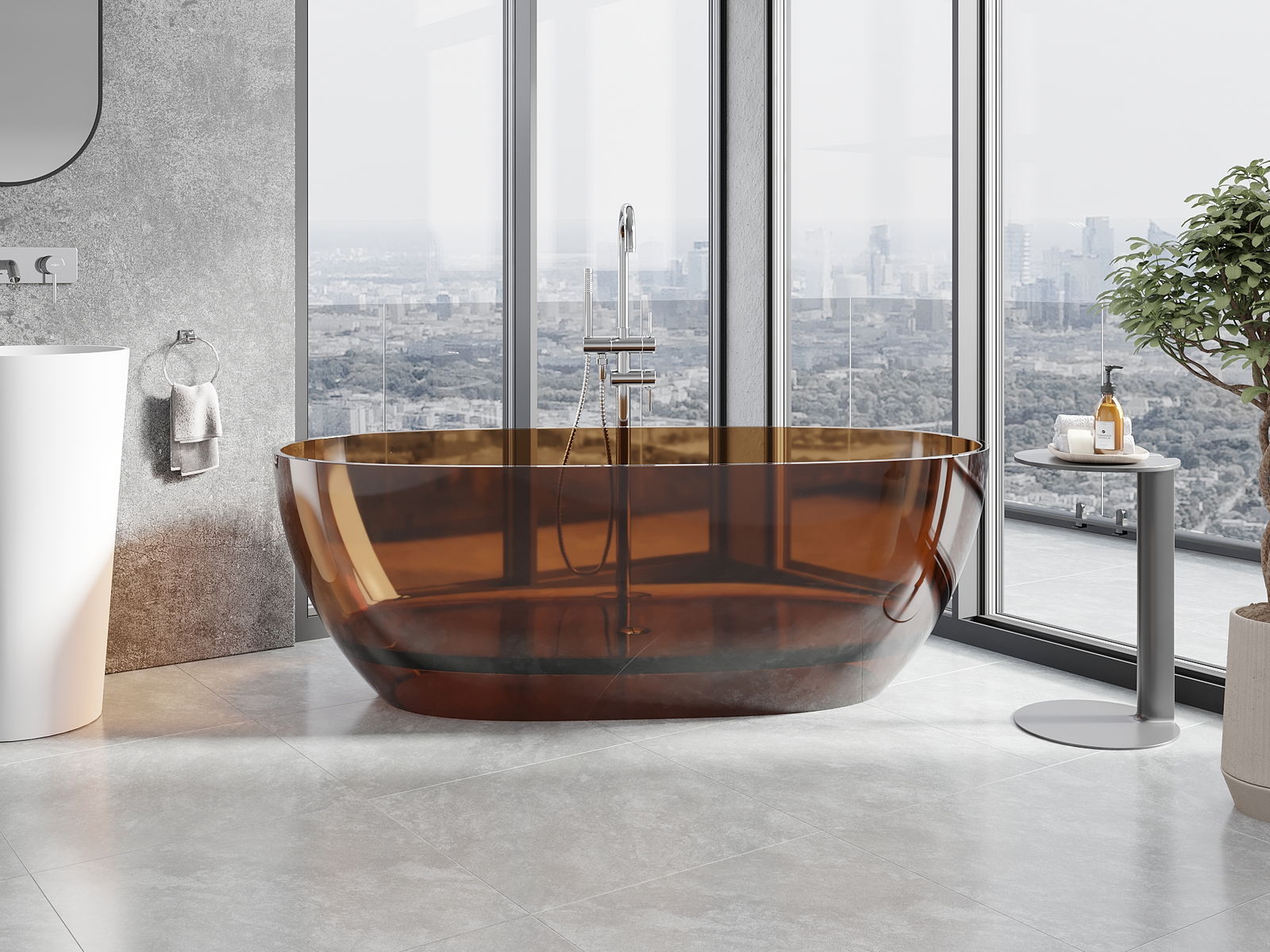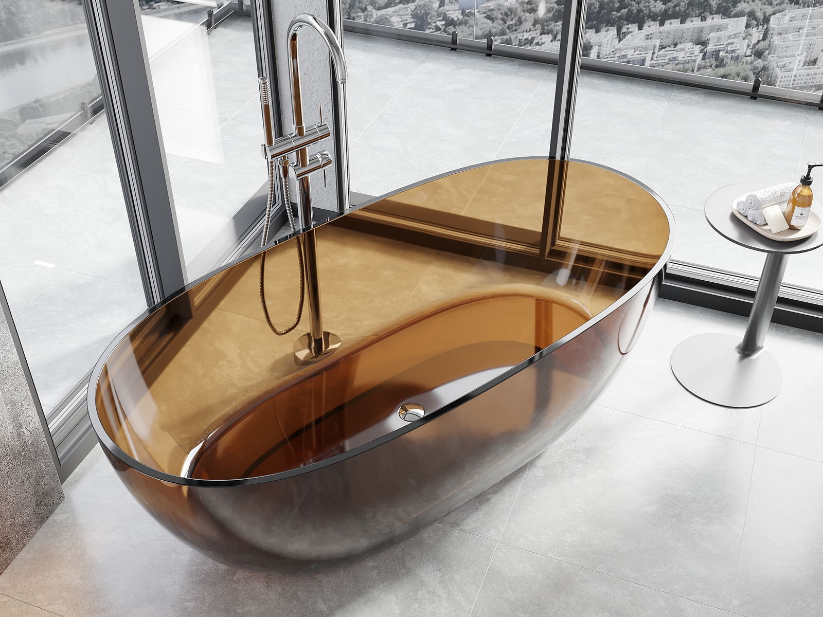 Това е модерен материал, който съчетава елегантен вид с висока издръжливост. Устойчив е на механични повреди, лесен за почистване и приятен на допир. Прозрачната форма и тънкият ръб на ваната ѝ придават лекота и уникален характер, създавайки ефектен акцент в подредбата на банята.