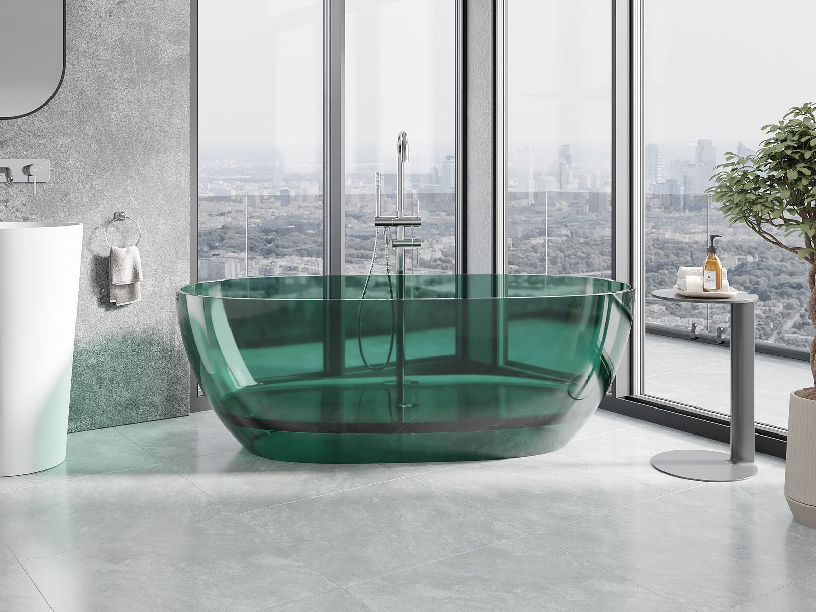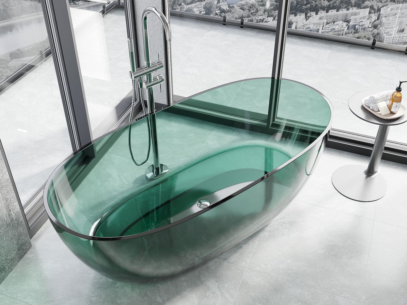 Това е модерен материал, който съчетава елегантен вид с висока издръжливост. Устойчив е на механични повреди, лесен за почистване и приятен на допир. Прозрачната форма и тънкият ръб на ваната ѝ придават лекота и уникален характер, създавайки ефектен акцент в подредбата на банята.