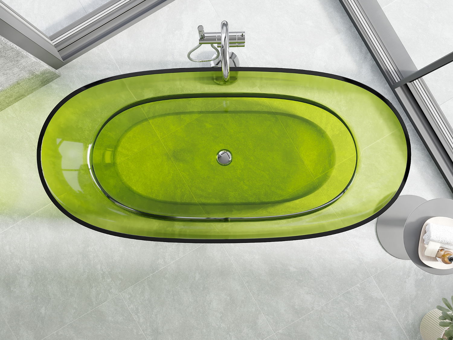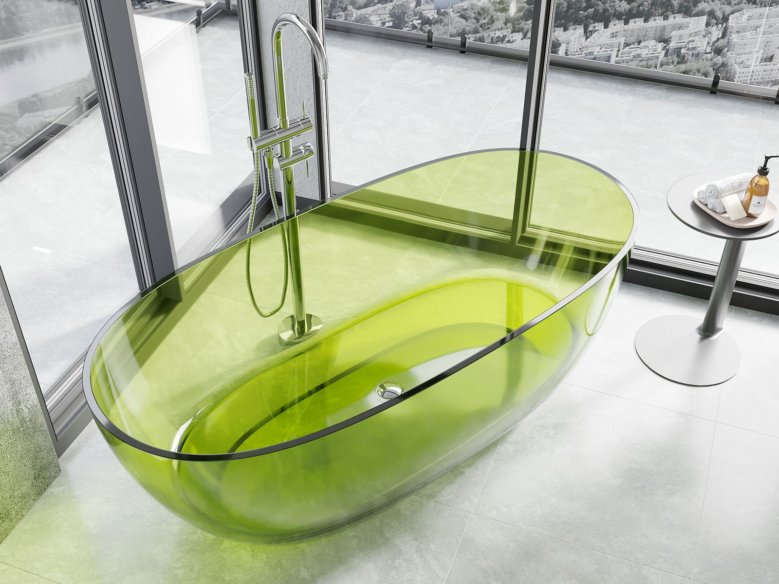 Това е модерен материал, който съчетава елегантен вид с висока издръжливост. Устойчив е на механични повреди, лесен за почистване и приятен на допир. Прозрачната форма и тънкият ръб на ваната ѝ придават лекота и уникален характер, създавайки ефектен акцент в подредбата на банята.