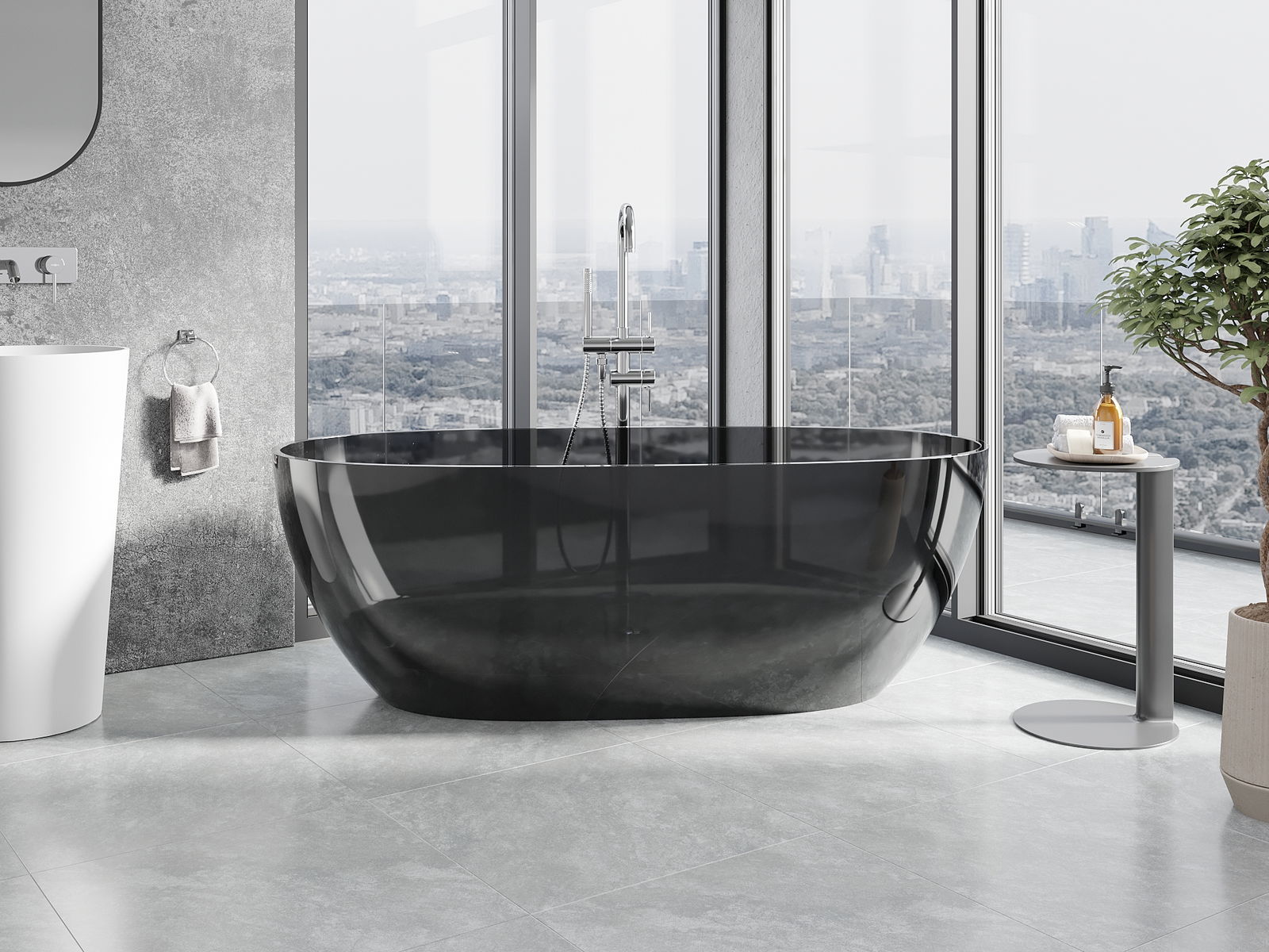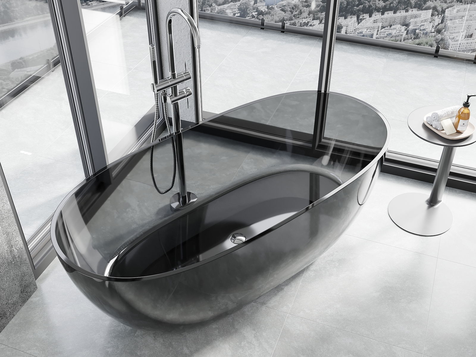 Това е модерен материал, който съчетава елегантен вид с висока издръжливост. Устойчив е на механични повреди, лесен за почистване и приятен на допир. Прозрачната форма и тънкият ръб на ваната ѝ придават лекота и уникален характер, създавайки ефектен акцент в подредбата на банята.